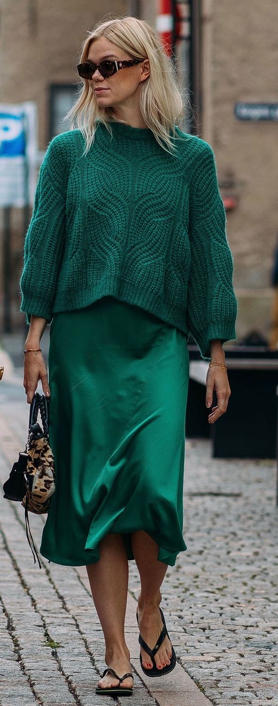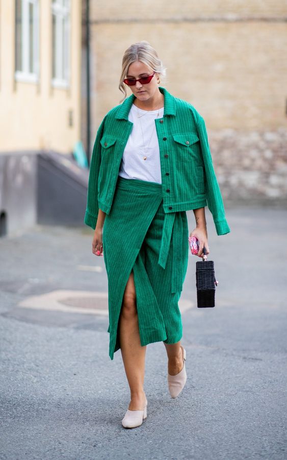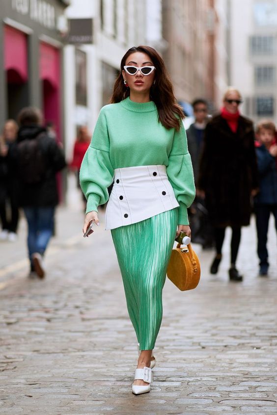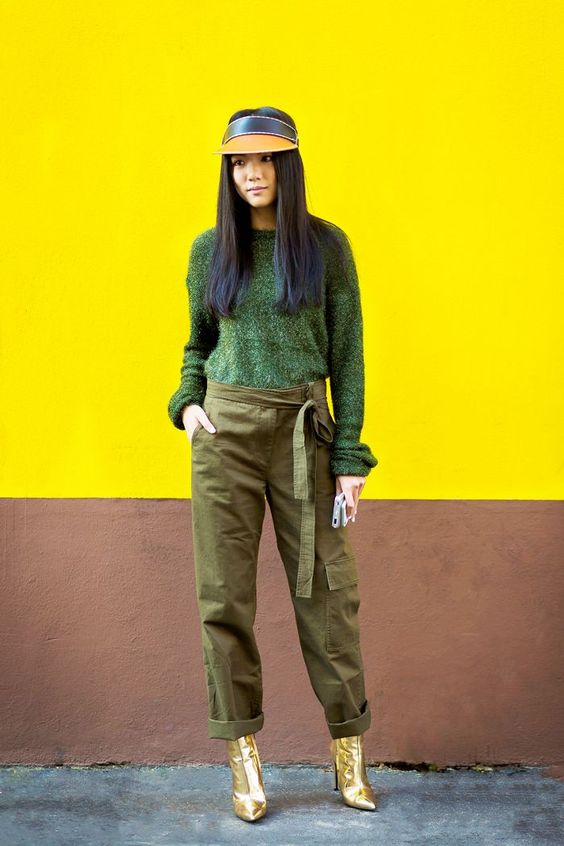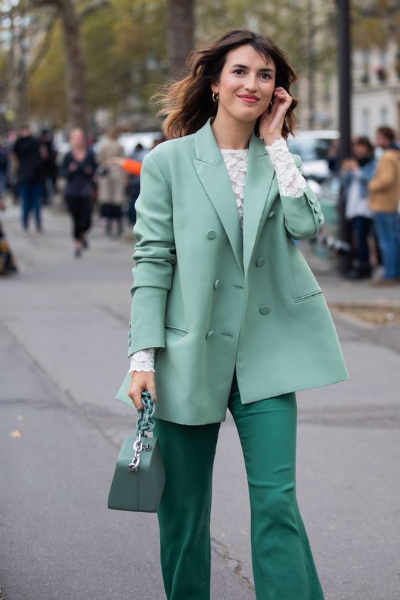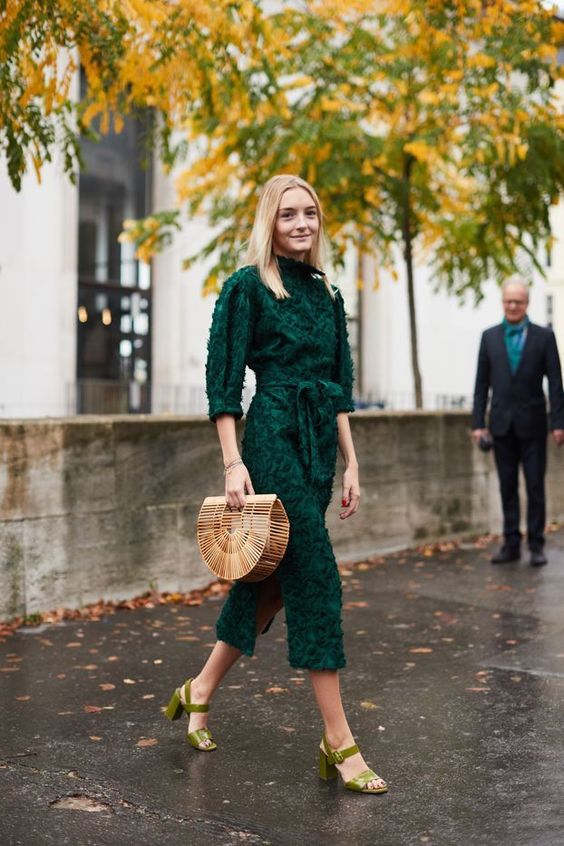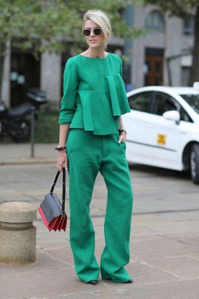 Are you ready for fashionable green outfits? Make you look more fresh and stylish. Here we present a variety of solid matching with perfect green. Starting from pants, skirts, dress, blezer, you will love. Let’s take a look, and find your favorite that you can copy.