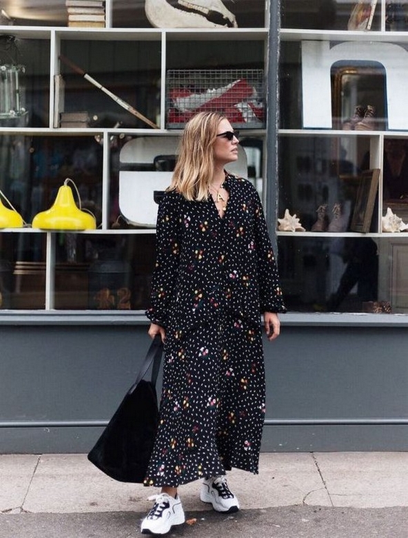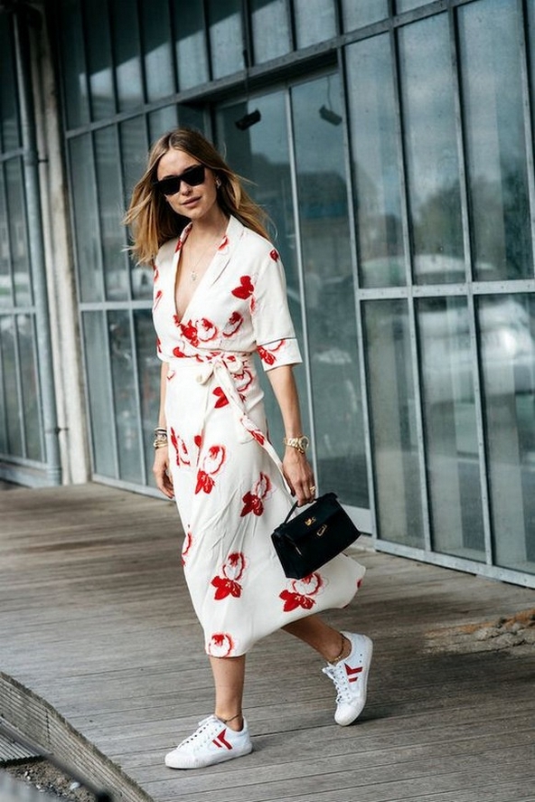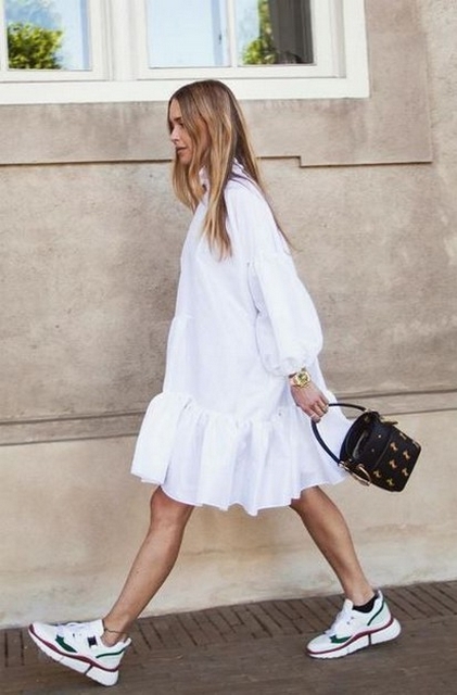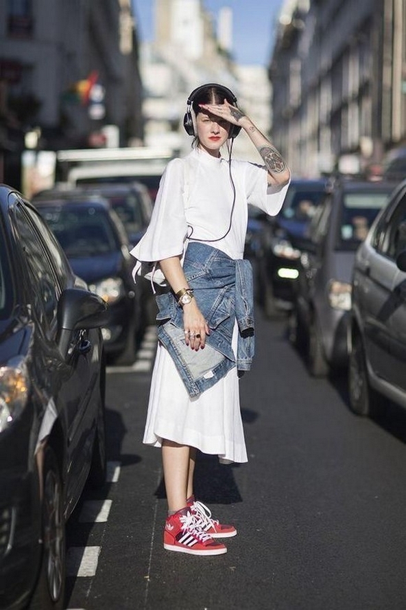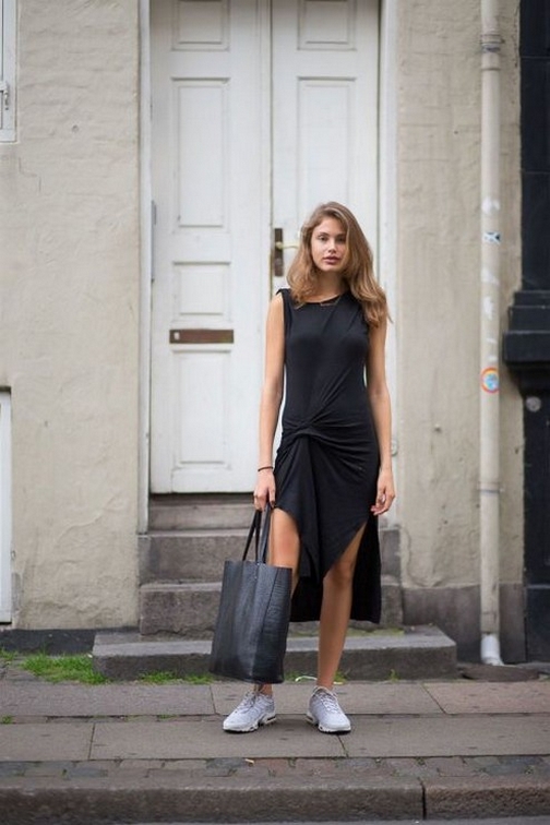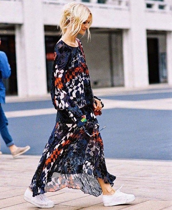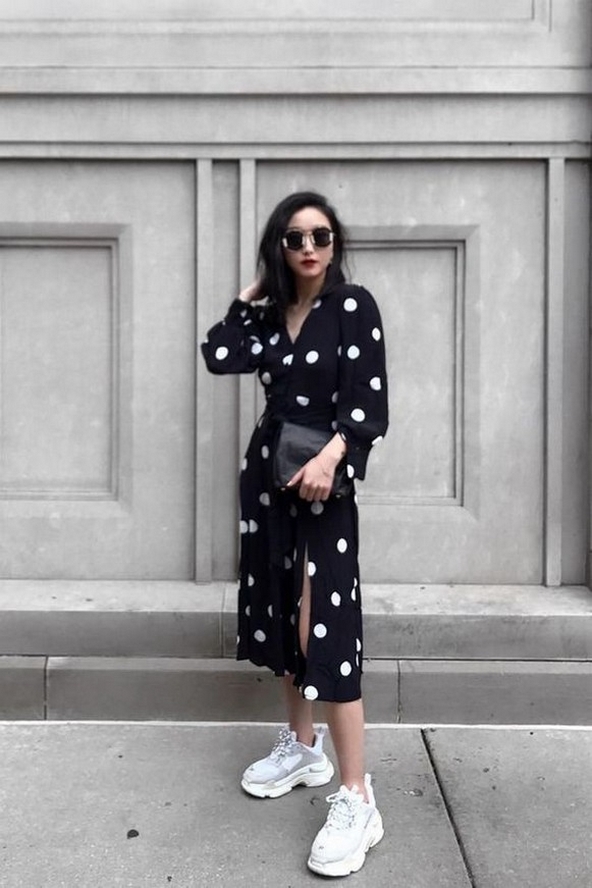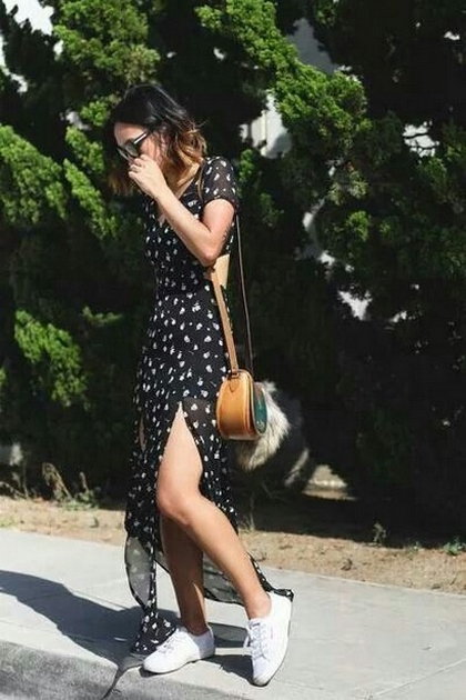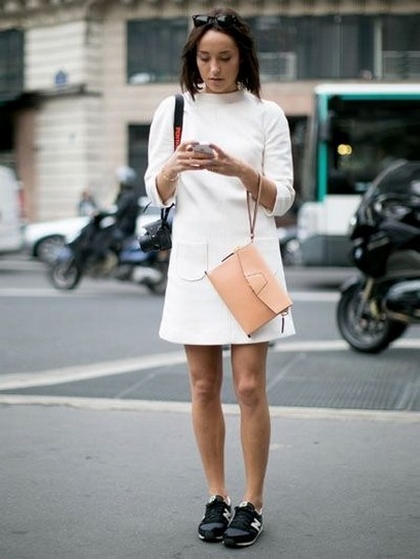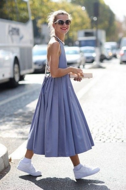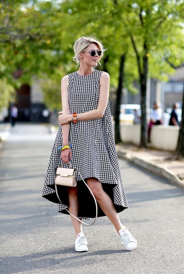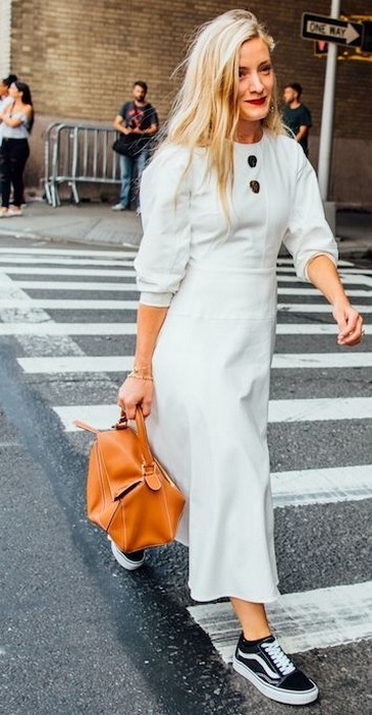 Dress and Sneakers Outfit Street Style Ideas