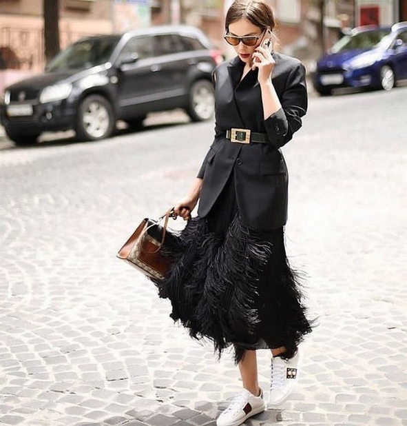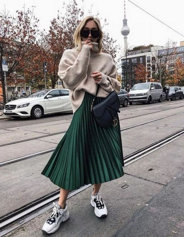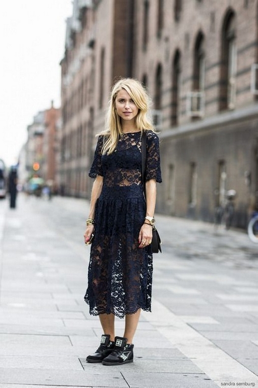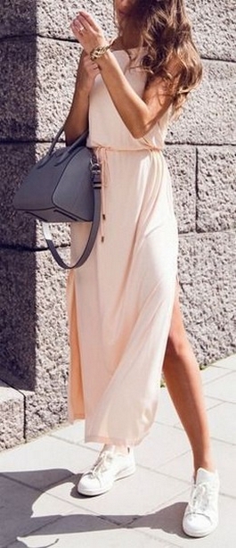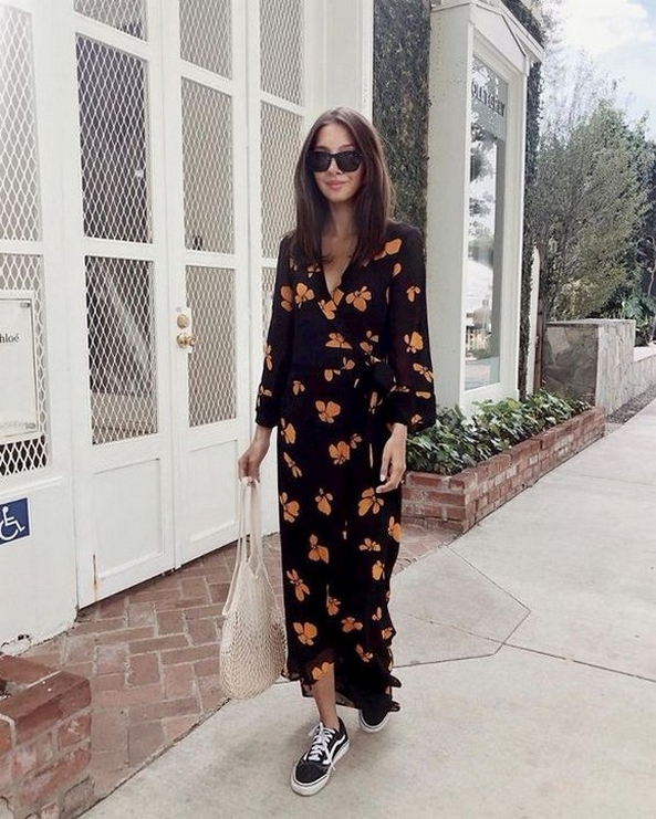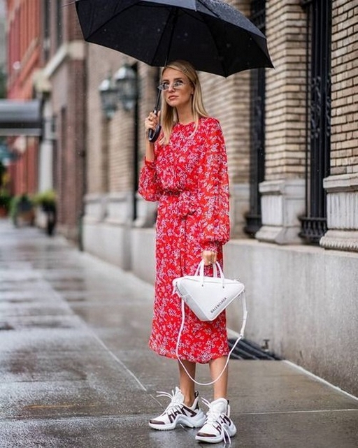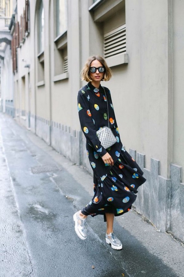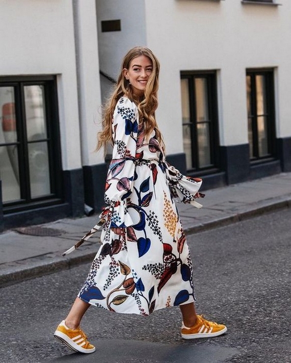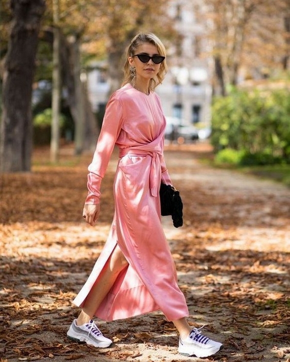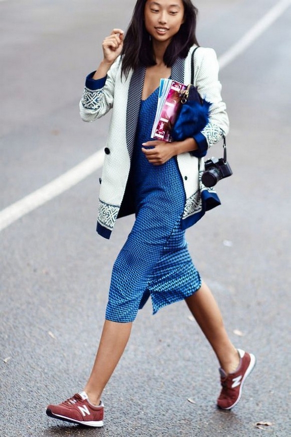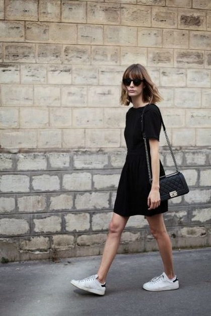 Dress and Sneakers Outfit Street Style Ideas