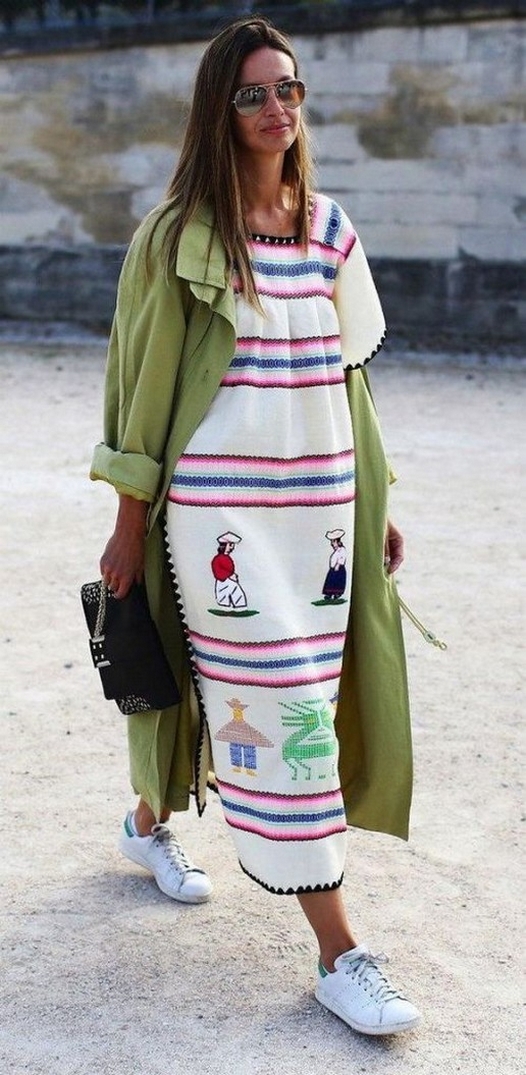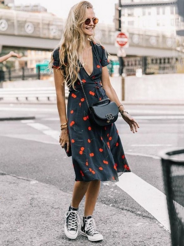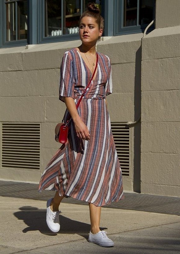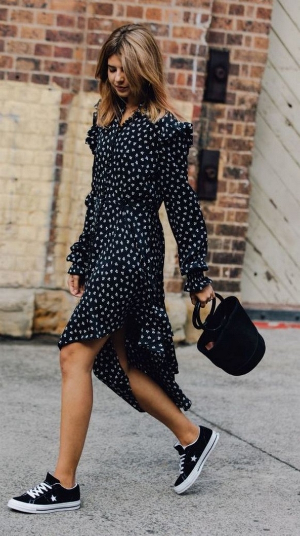 82 Stylish and Comfy Dress and Sneakers Outfit Look
