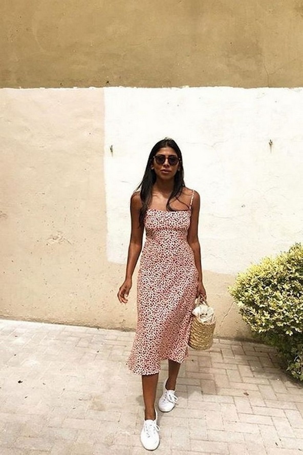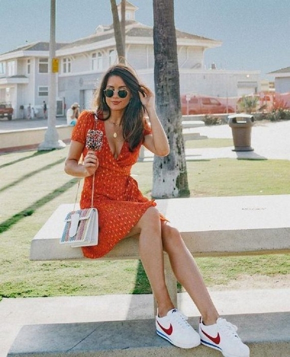 One of them is sneakers! Yes, a combination of sneakers and dresses can be a super cool casual OOTD style. It’s really suitable for hanging out to be an outfit during the holidays. You also don’t need to be afraid of sore feet because sneakers are relatively comfortable to use for many activities. Here we provide inspiration for models wearing dresses combined with sneakers that will make your appearance look more beautiful.
