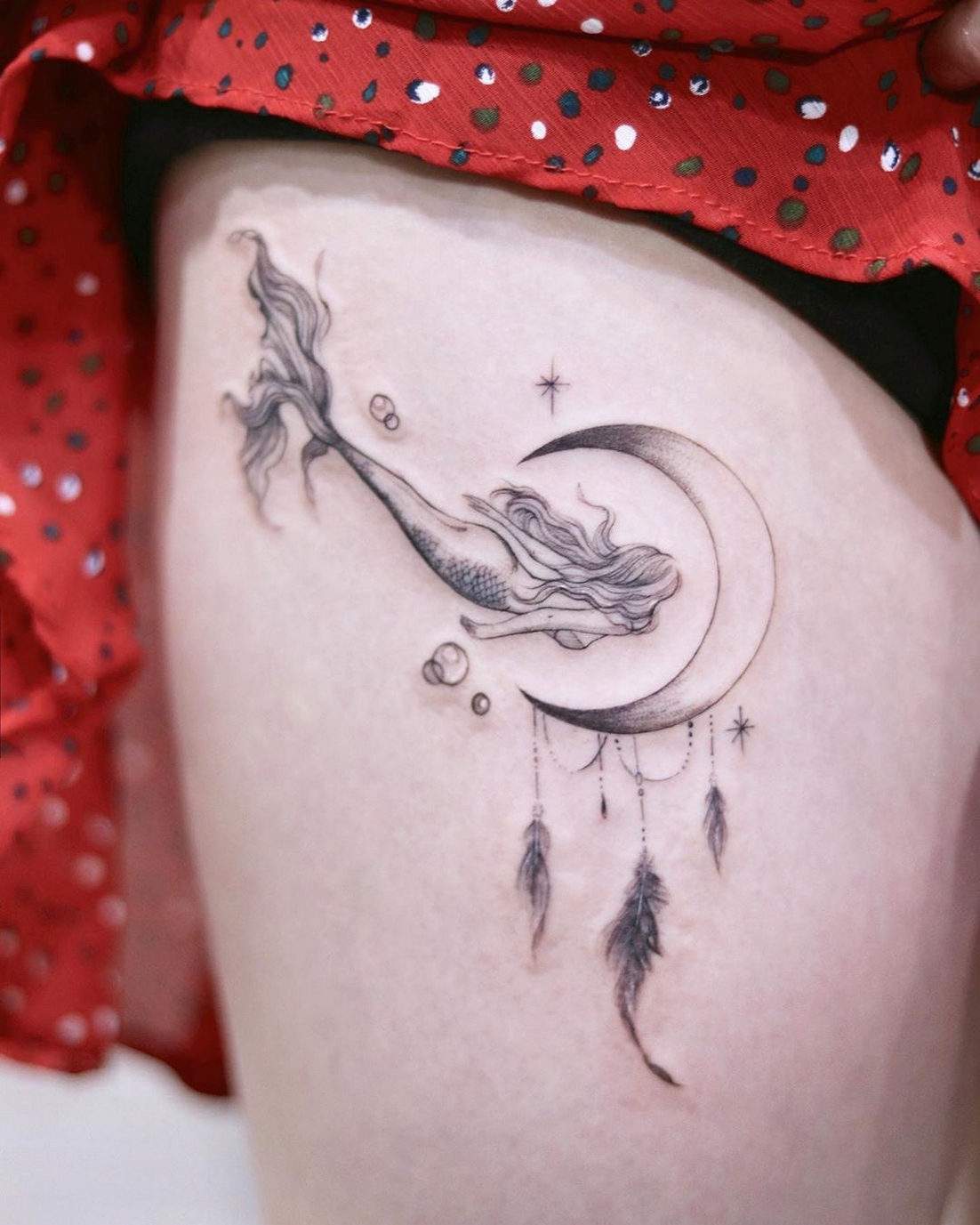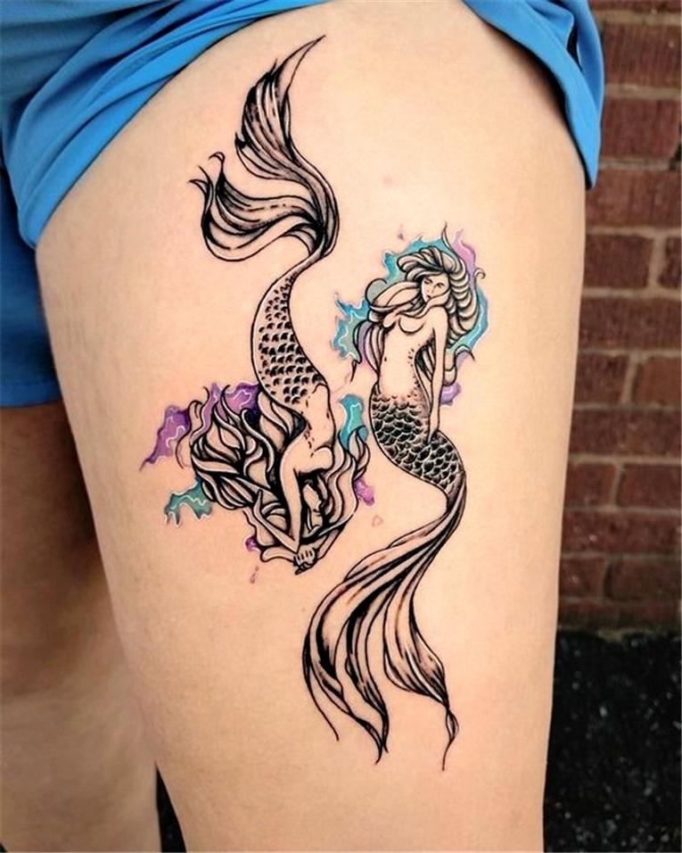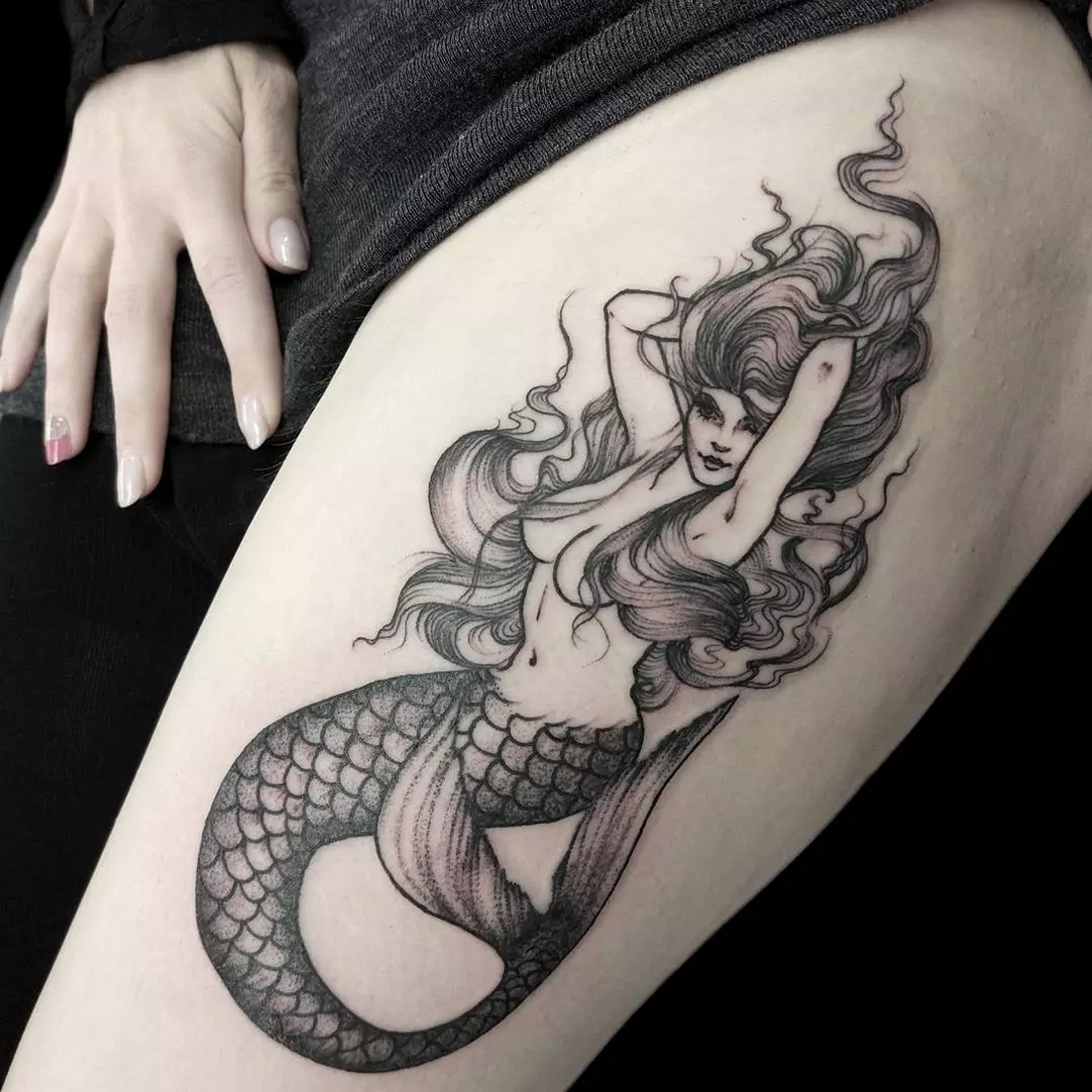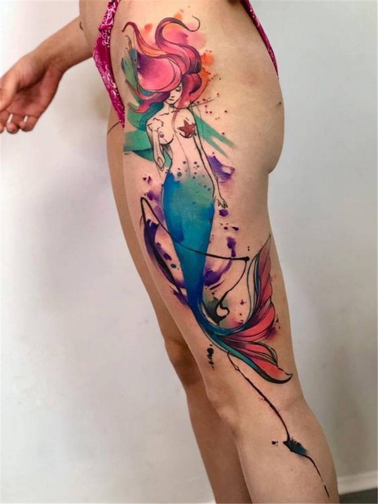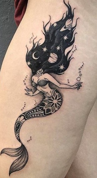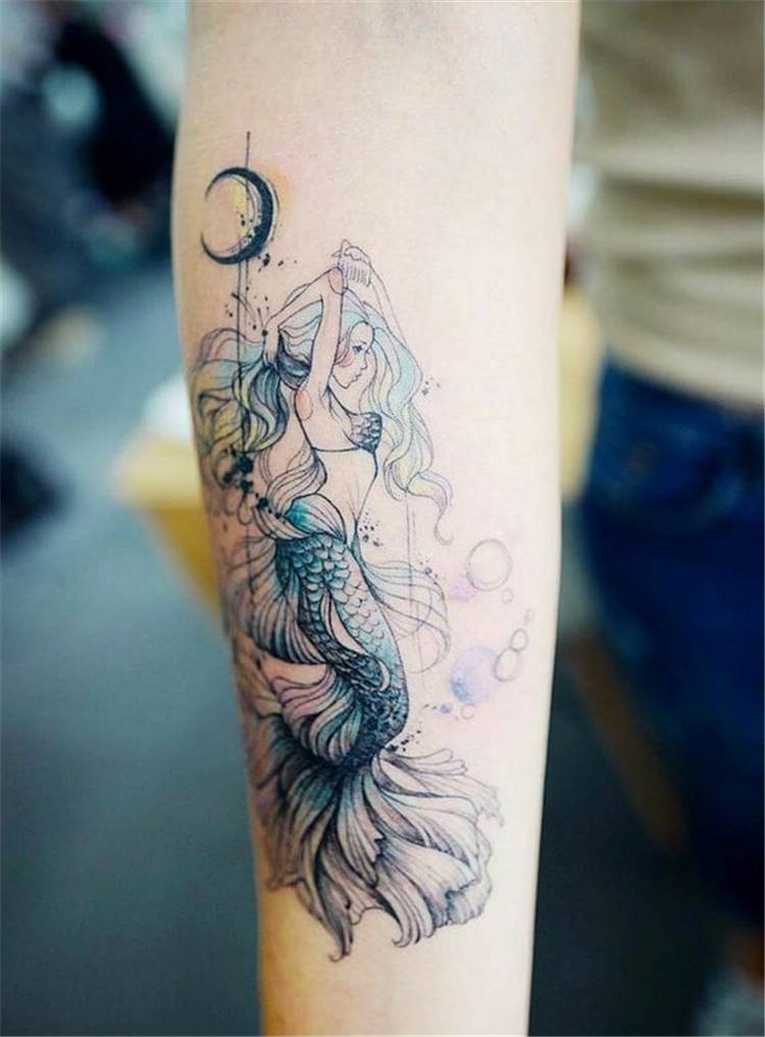Tattoos with the image of a mermaid are as good as looking at men and on the female body. Like most symbols of the water world, the mermaid most often chooses people whose work or hobby is associated with water: sailors, fishermen, swimmers, lovers of diving. It is believed that this category of mermaid tattoos will definitely bring good luck. In general, the temperament of this mythical beauty is not very friendly. Here are 50+ Mermaid Tattoos Ideas for Women.