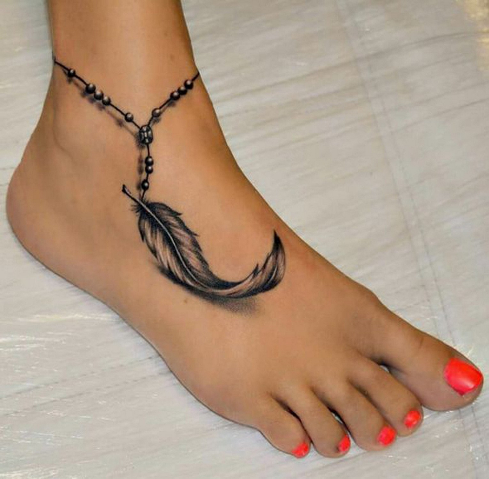 70 Beautiful Feather Tattoo On Foot 04