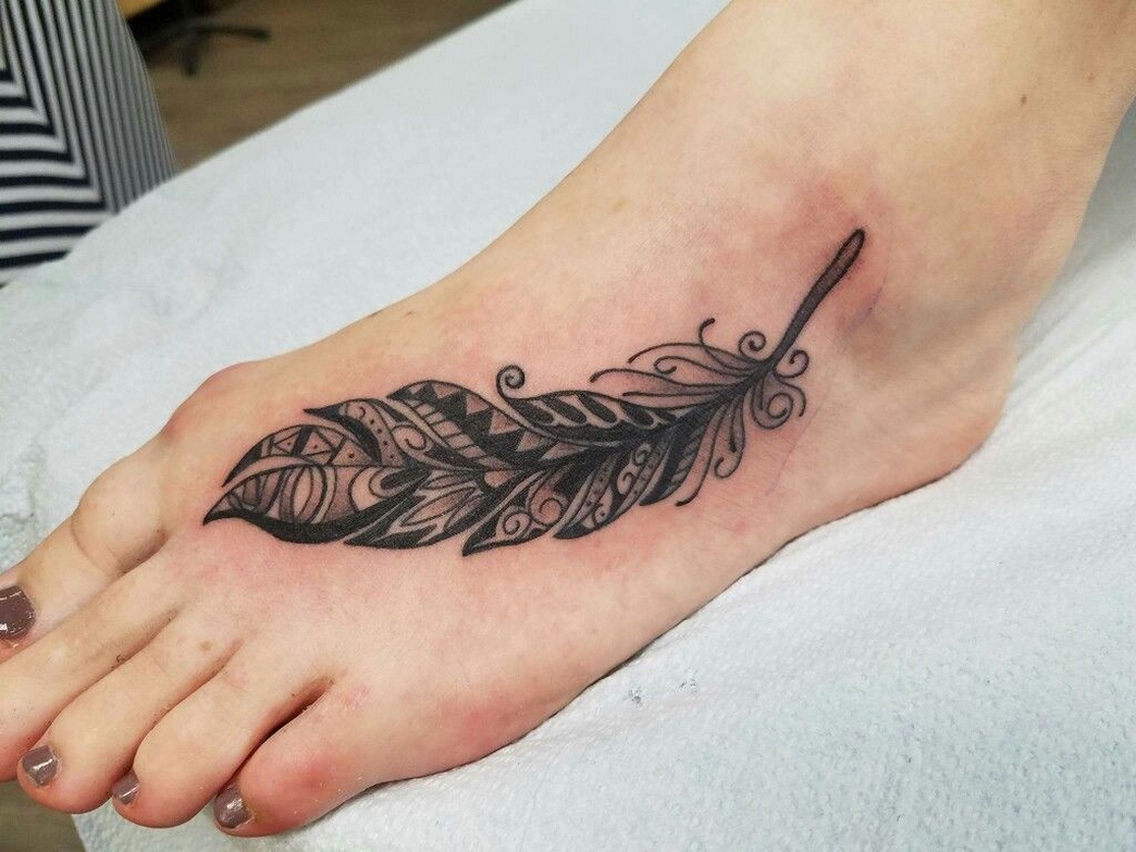 70 Beautiful Feather Tattoo On Foot 14