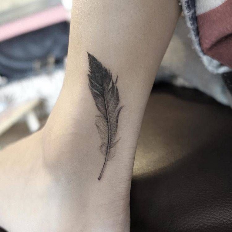 70 Beautiful Feather Tattoo On Foot 06
