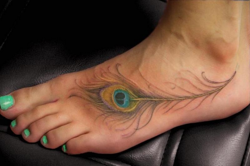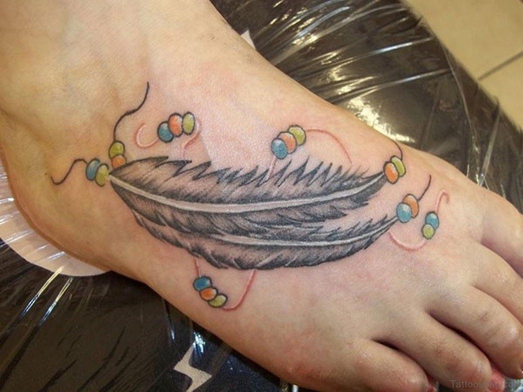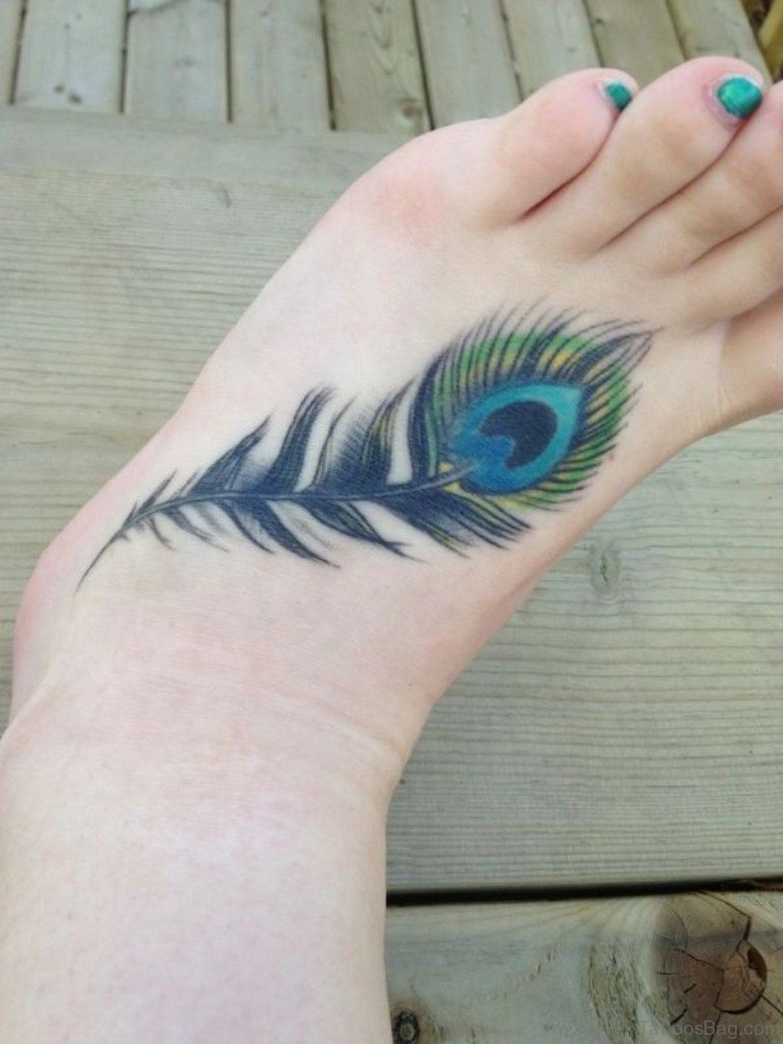 70 Beautiful Feather Tattoo On Foot 70