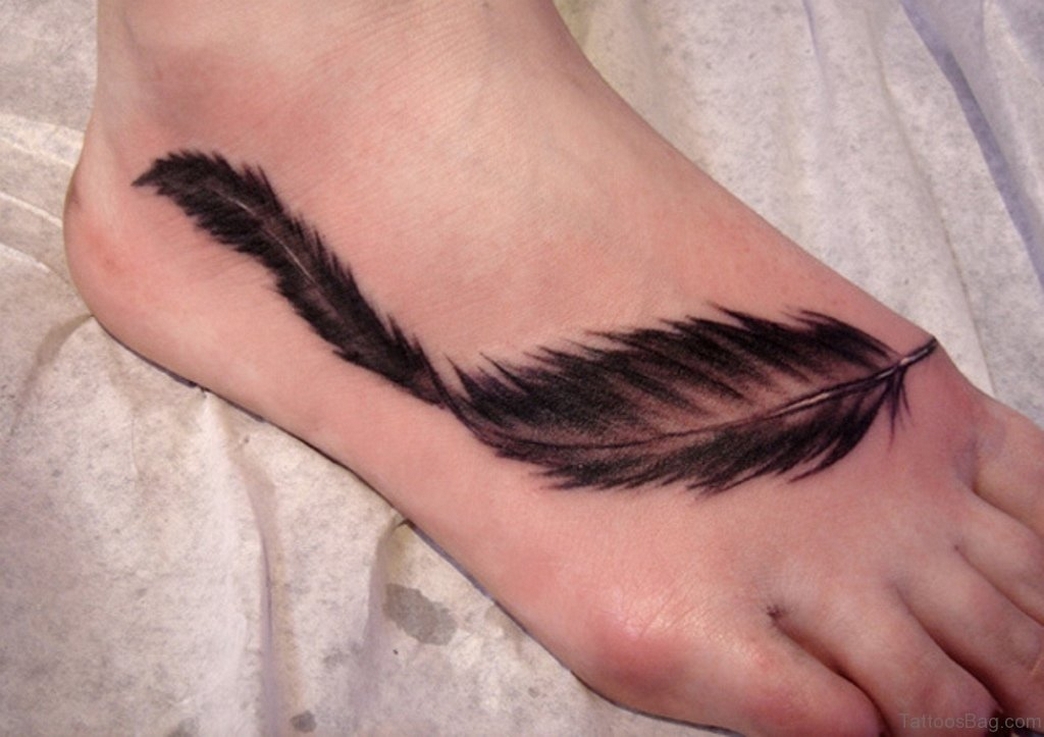 70 Beautiful Feather Tattoo On Foot 16