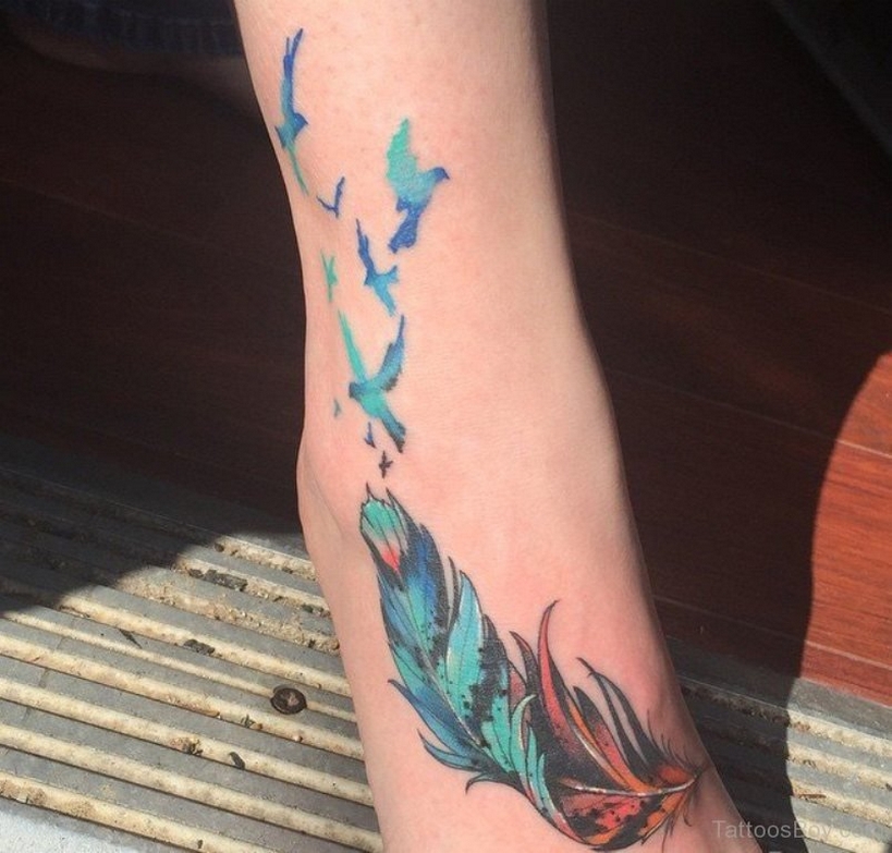 70 Beautiful Feather Tattoo On Foot 20
