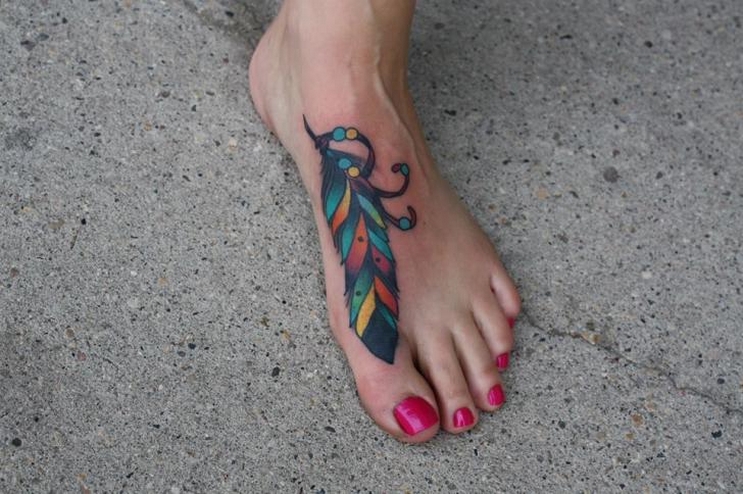 70 Beautiful Feather Tattoo On Foot 15