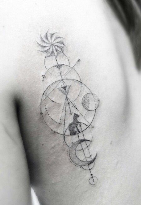 50 Geometric Sun and Moon Tattoo for Women Ideas 28