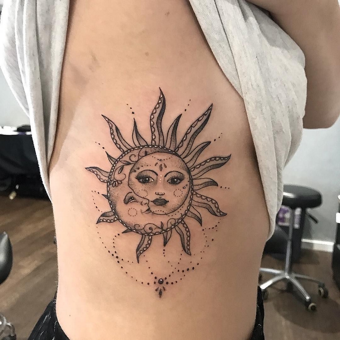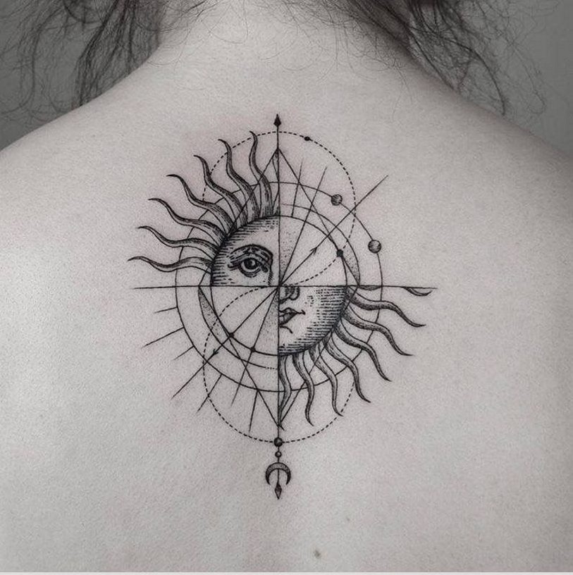 50 Geometric Sun and Moon Tattoo for Women Ideas 18