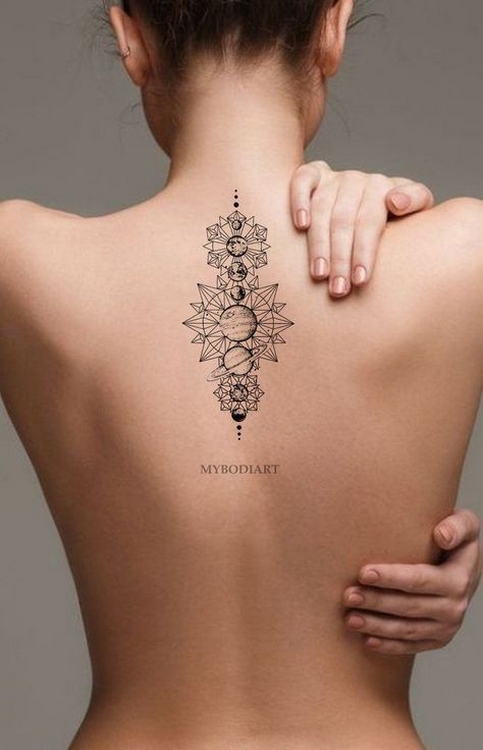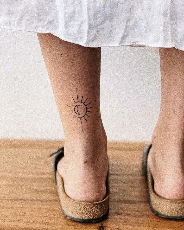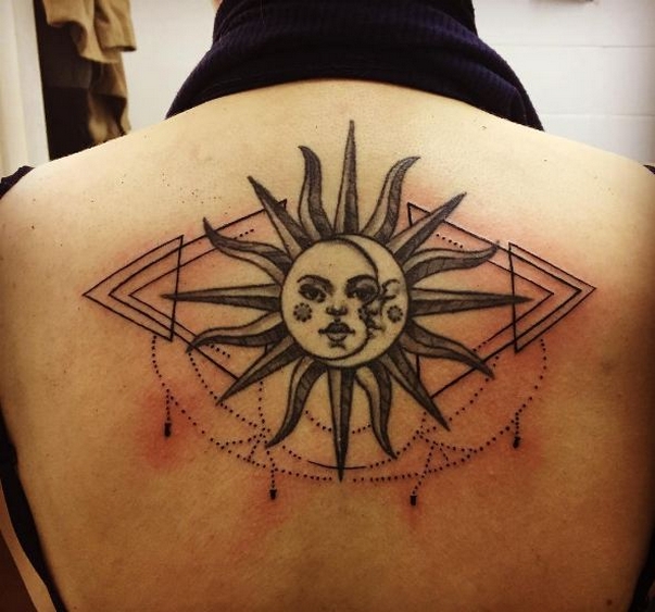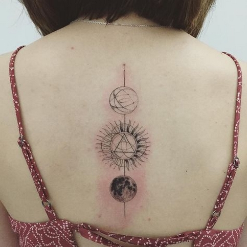 50 Geometric Sun and Moon Tattoo for Women Ideas 19