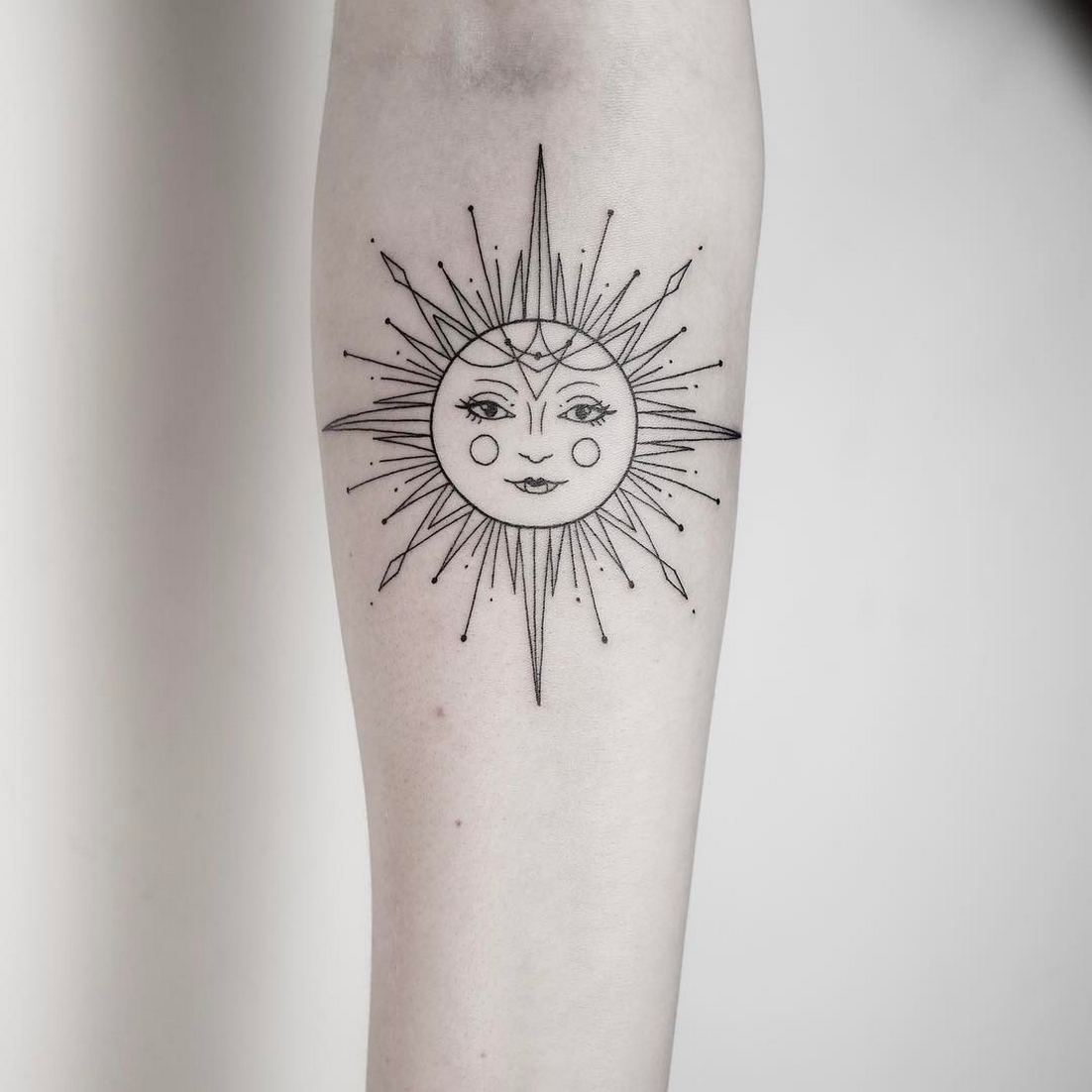 50 Geometric Sun and Moon Tattoo for Women Ideas 20