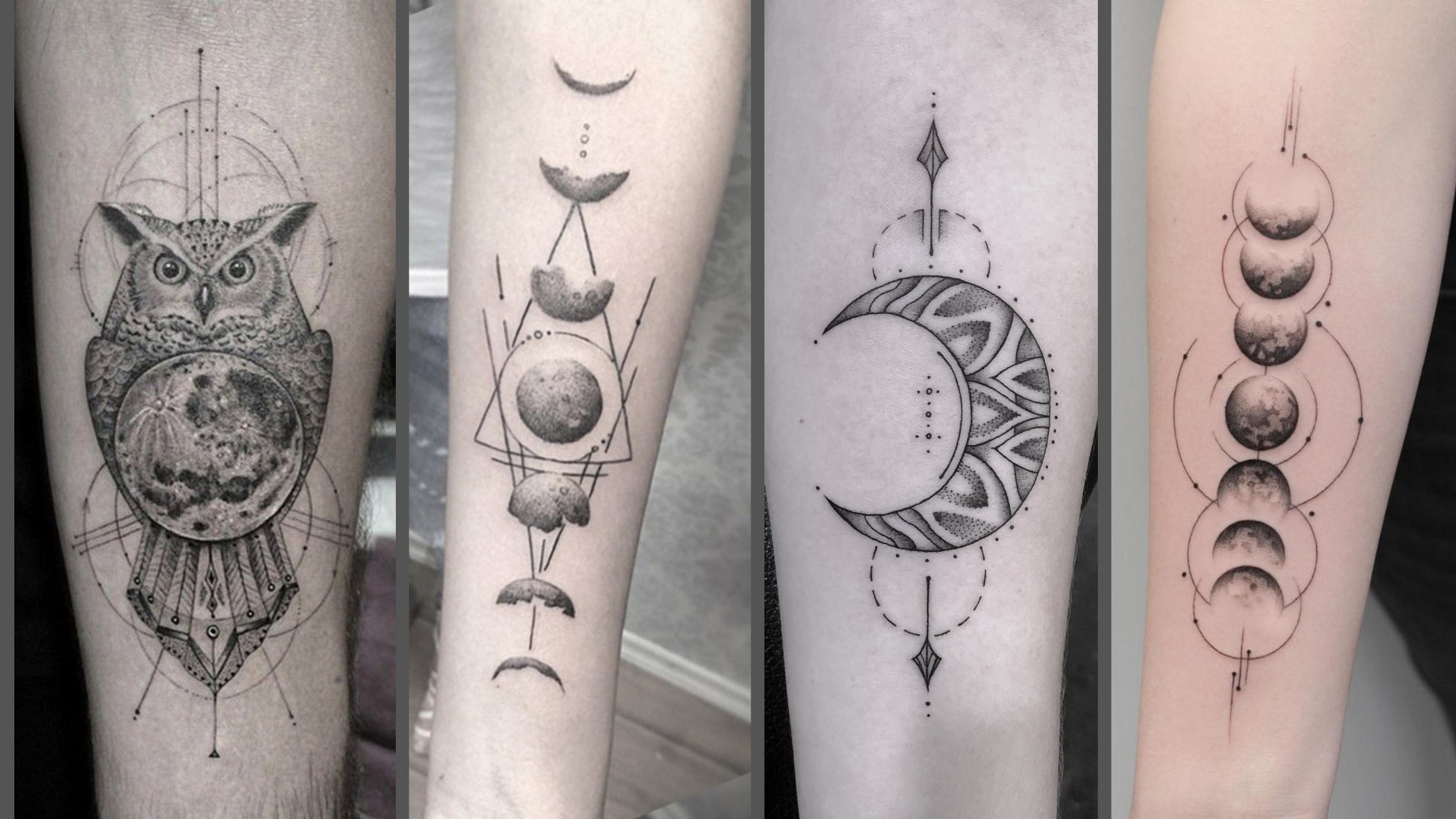 50 Geometric Sun and Moon Tattoo for Women Ideas 36