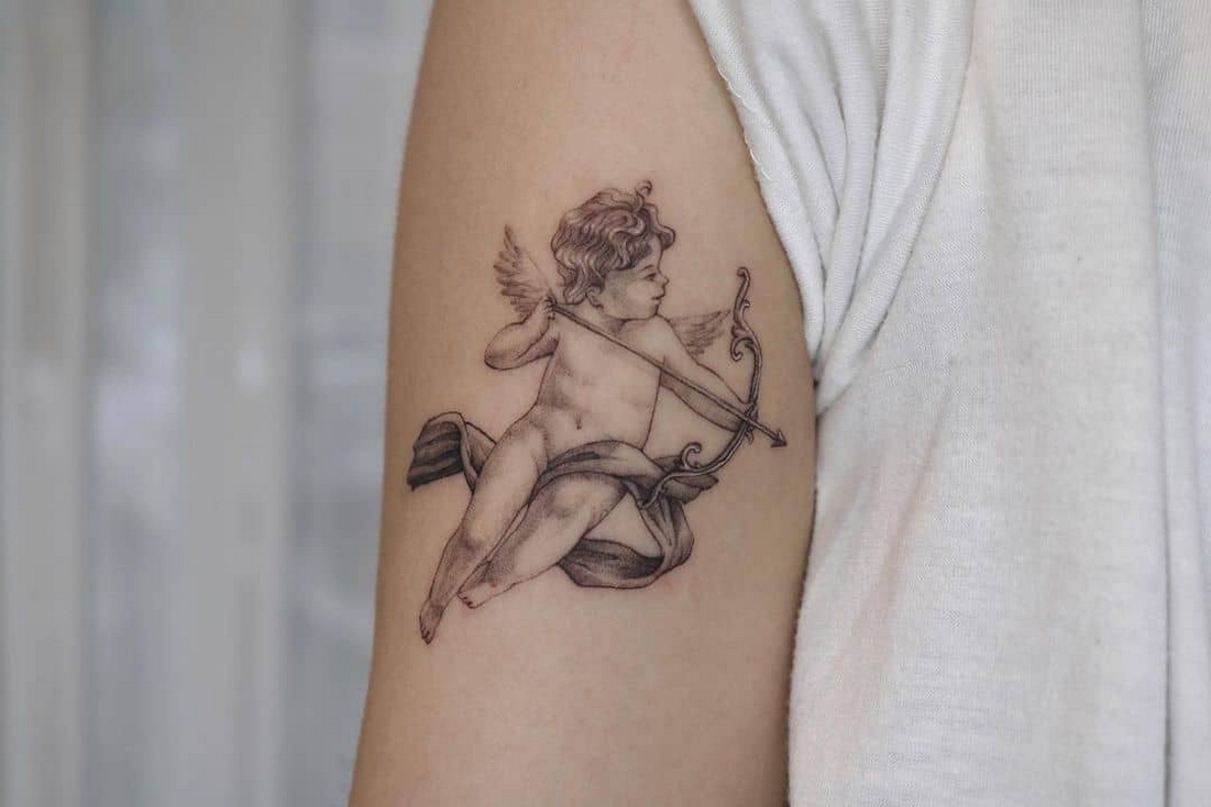 50 Beautiful and Cute Baby Angel Tattoos for Women Ideas 28