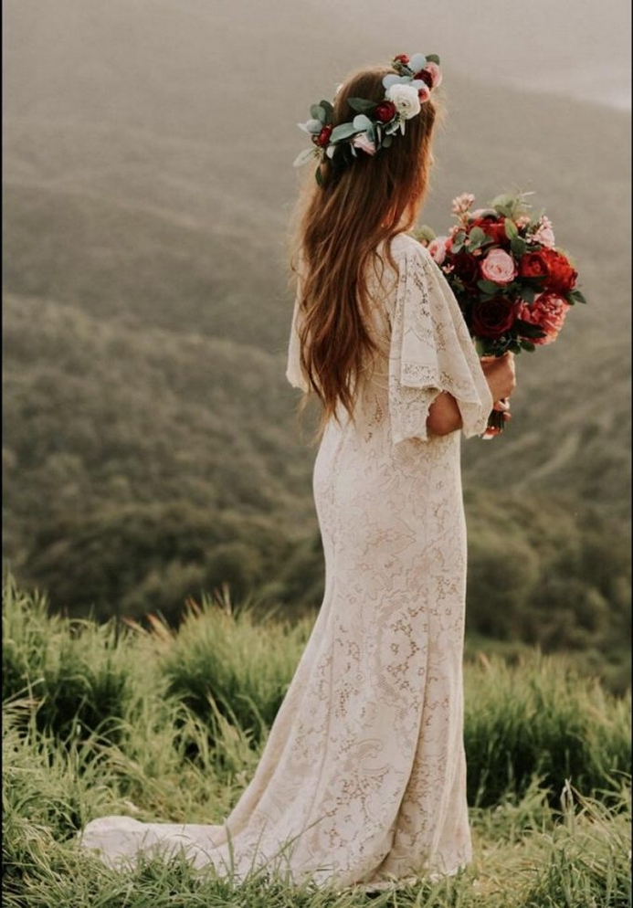 A rustic style wedding dress has a natural and classic feel that makes the bride’s appearance seem more simple and elegant. It is the perfect choice for brides looking for a comfortable and natural look. As an alternative, rustic wedding dresses can also have details in the form of flowers and leaves inspired by nature, which make the bride’s appearance seem closer to nature. Accessories that are often used with this dress are silver or gold tiaras and earrings that are simple and not overdone.