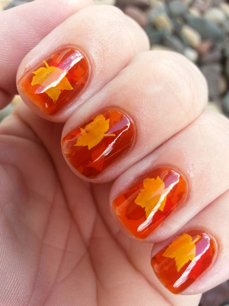 45 Easy and Simple Nail Designs Leaves Fall for Women Ideas 16