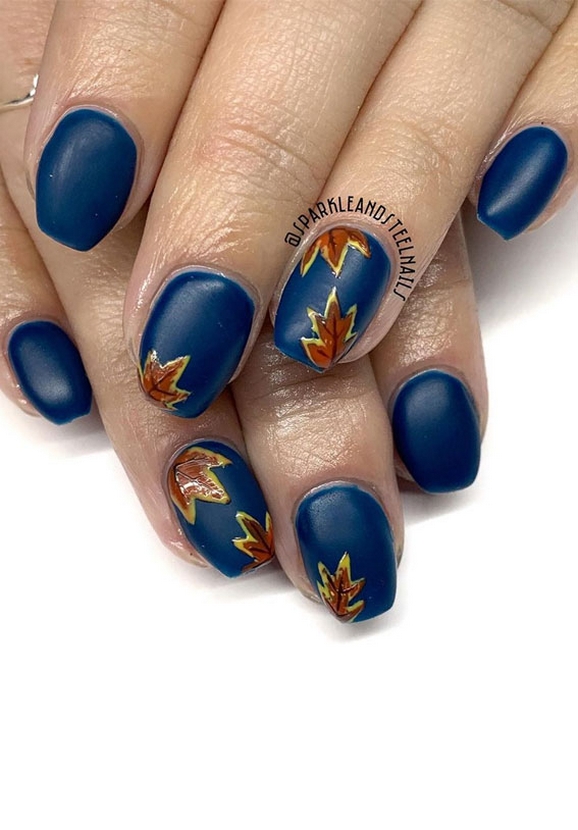 45 Easy and Simple Nail Designs Leaves Fall for Women Ideas