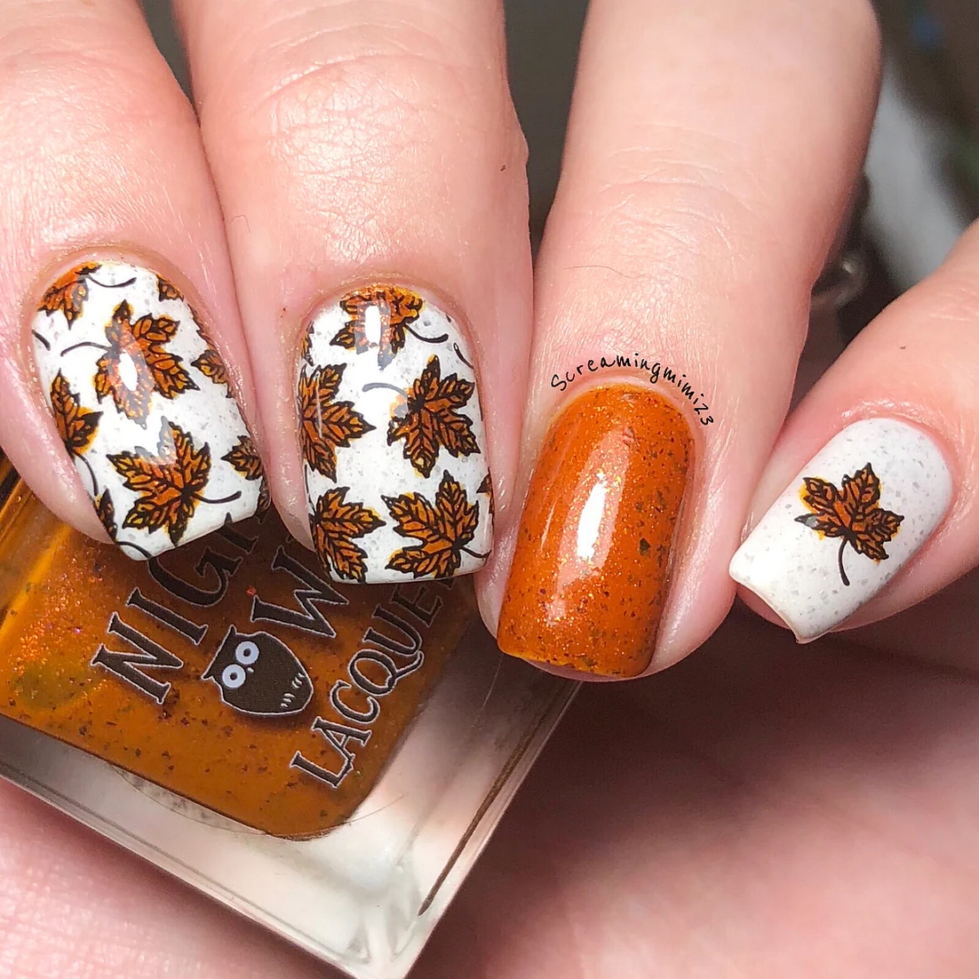 45 Easy and Simple Nail Designs Leaves Fall for Women Ideas 13