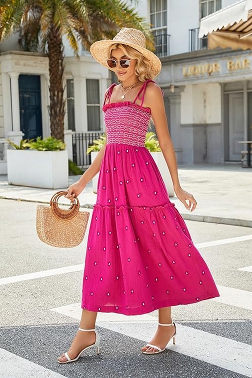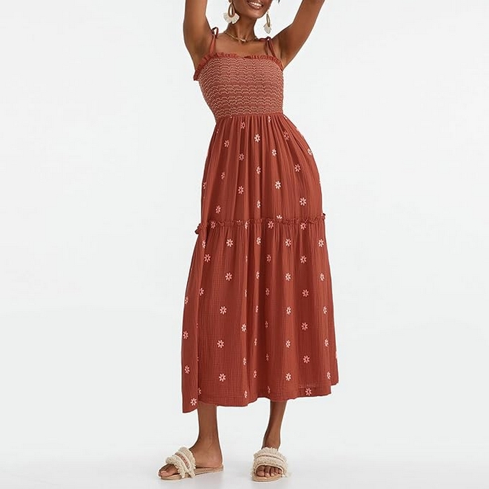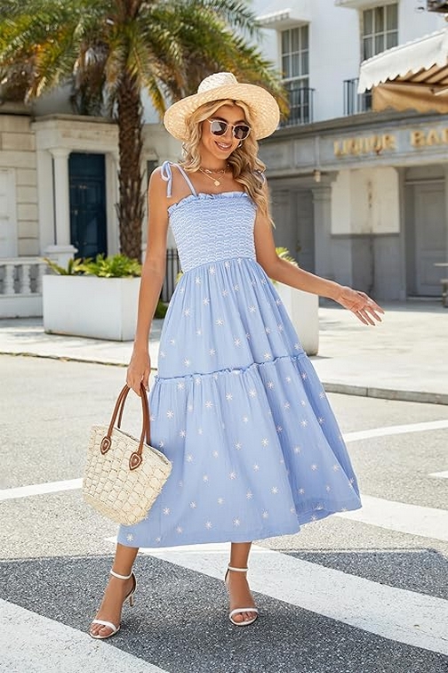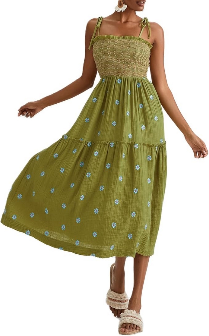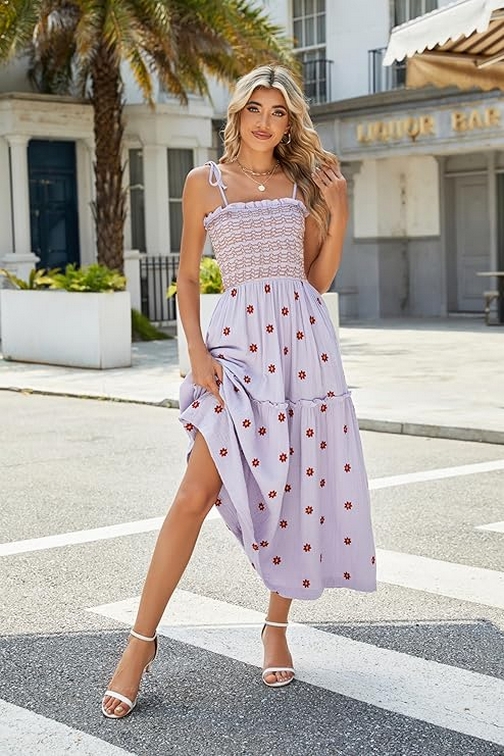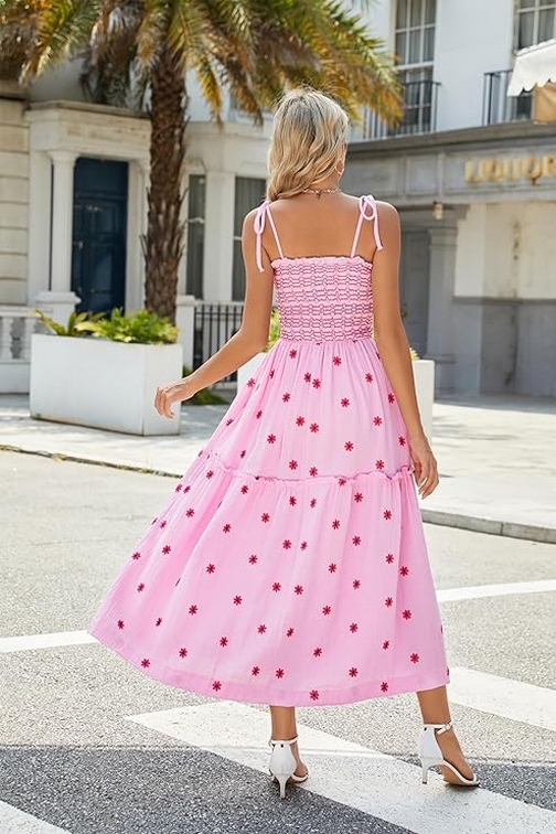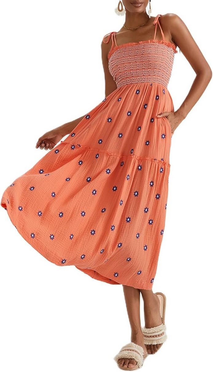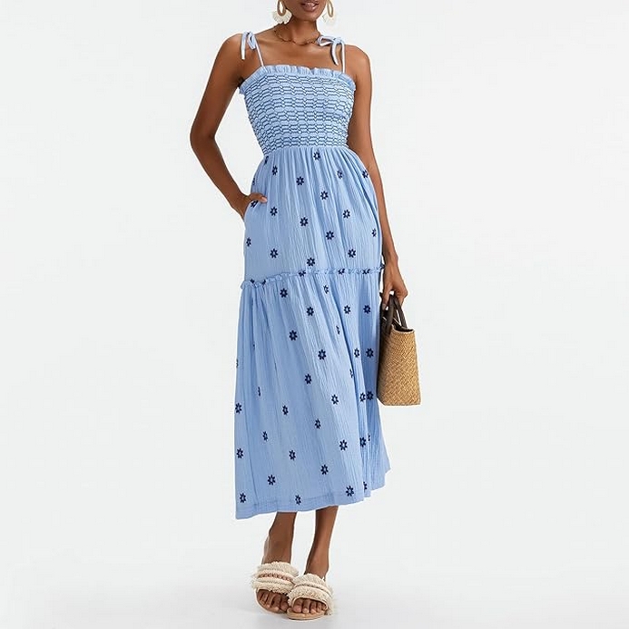 Summer is the perfect season to embrace light, breezy, and beautifully designed clothing that enhances your natural grace and keeps you feeling fabulous. The Women’s Floral Embroidered Maxi Dress is a quintessential summer piece that combines delicate floral embroidery with a flattering, flowy silhouette. Featuring sleeveless tie shoulders and a smocked bodice, this dress is designed to be both stylish and comfortable, making it an ideal choice for a range of summer events.