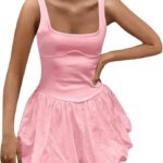 Women Summer Mini Dress Sleeveless Bubble Hem Tank Dress Ideas 07