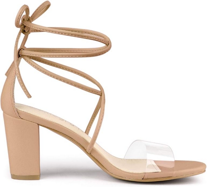 Stylish Women Clear Strap Block Heels and Lace Up Heels Sandals Ideas for 2024 14