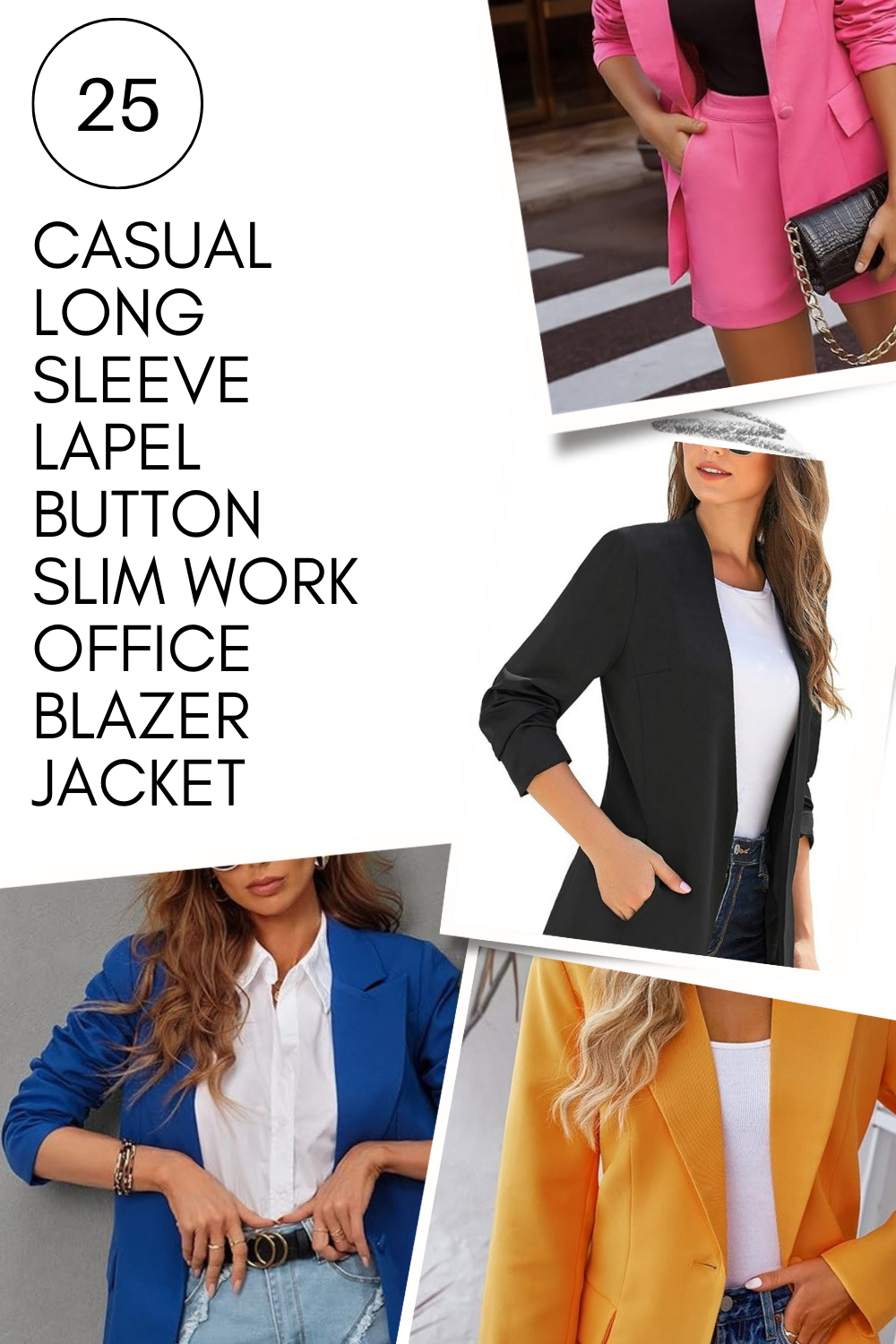 The casual long sleeve lapel button slim work office blazer jacket is an essential piece for any modern professional wardrobe. Its blend of style, comfort, and versatility makes it a go-to garment for various settings, from the office to after-hours events. By choosing the right fit, fabric, and accessories, you can elevate your work attire and maintain a sophisticated yet relaxed look throughout your busy day. Embrace this contemporary classic and enjoy the effortless elegance it brings to your professional and casual outfits alike.