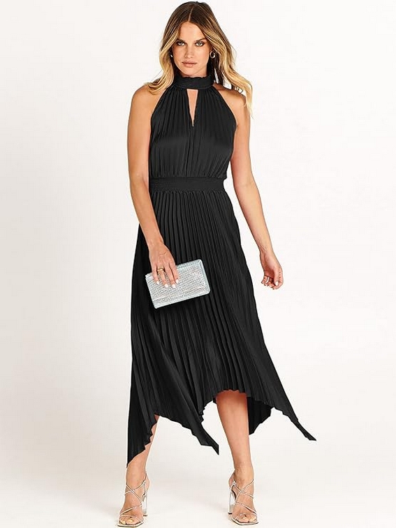 Women Sleeveless Cutout Halter Neck Satin Formal Asymmetric Party Cocktail Elegant Wedding Guest Evening 1