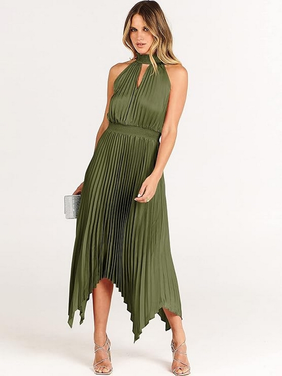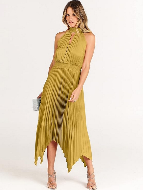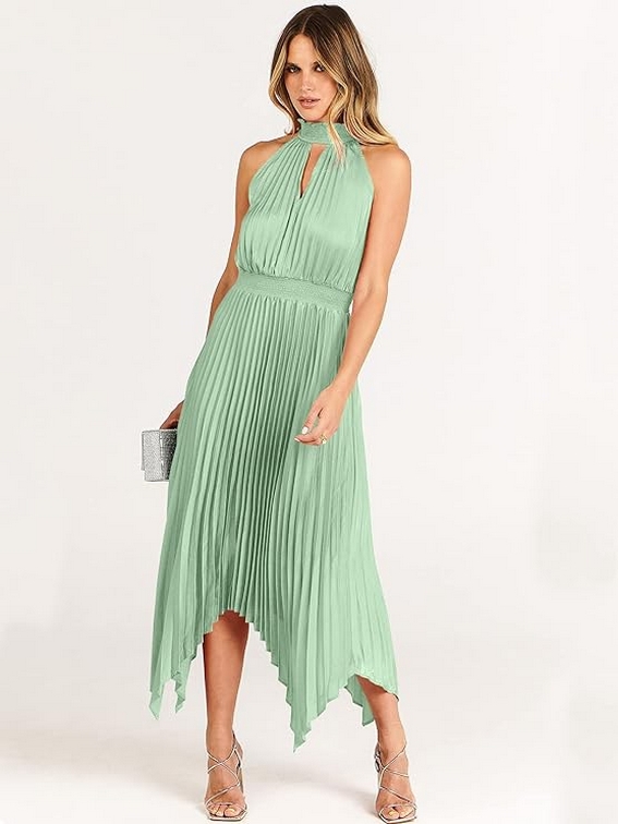 Women Sleeveless Cutout Halter Neck Satin Formal Asymmetric Party Cocktail Elegant Wedding Guest Evenin 11