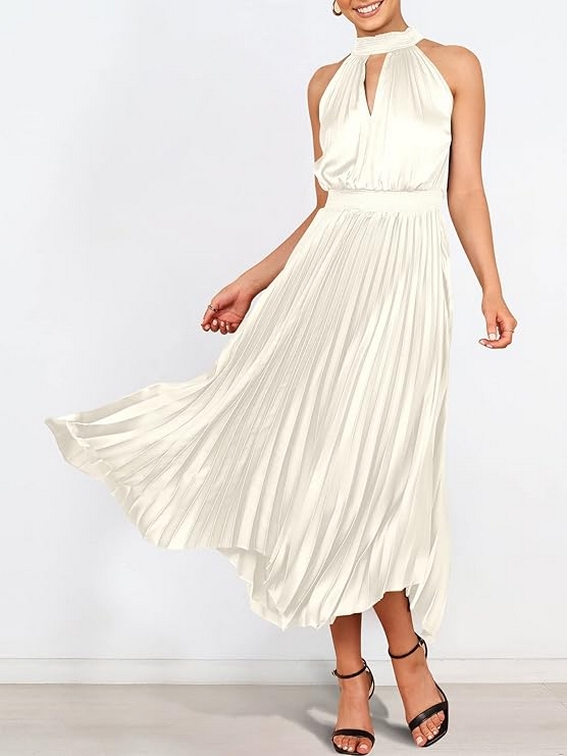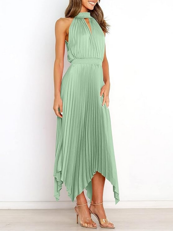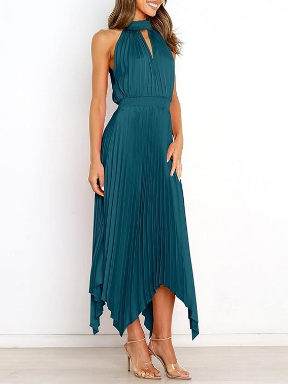 Women Sleeveless Cutout Halter Neck Satin Formal Asymmetric Party Cocktail Elegant Wedding Guest Evenin