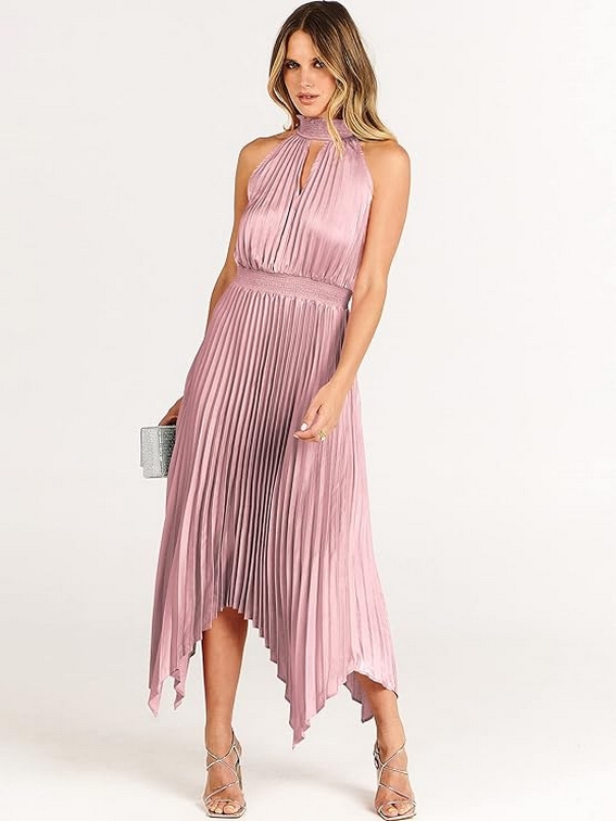 Women Sleeveless Cutout Halter Neck Satin Formal Asymmetric Party Cocktail Elegant Wedding Guest Evenin 9