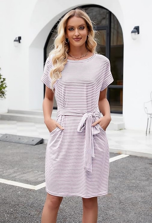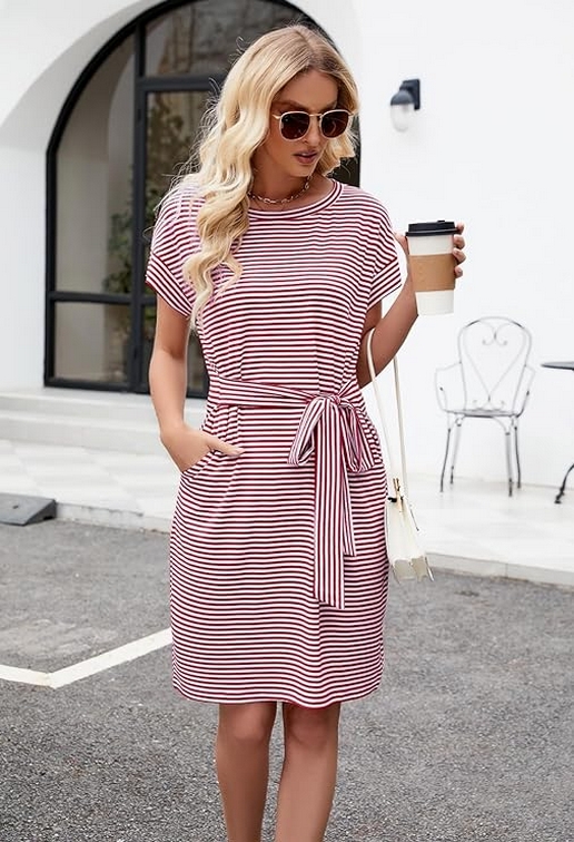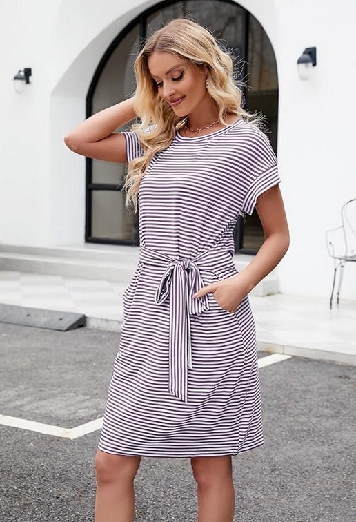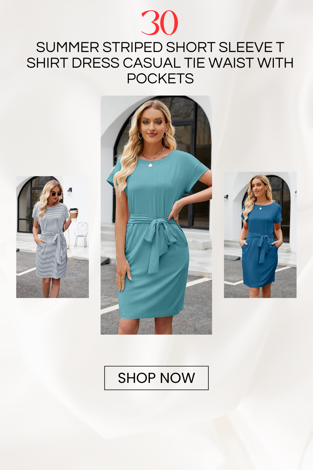 The summer striped short sleeve T-shirt dress is the perfect blend of comfort and style, making it an essential piece for any woman’s wardrobe. Its versatility allows you to dress it up or down, making it suitable for a wide range of occasions—from casual beach days to evening outings. With its flattering tie waist, functional pockets, and timeless stripes, this dress will quickly become your summer go-to. So, don’t wait—find the perfect striped T-shirt dress that suits your style and enjoy the effortless chic it brings to your summer wardrobe!