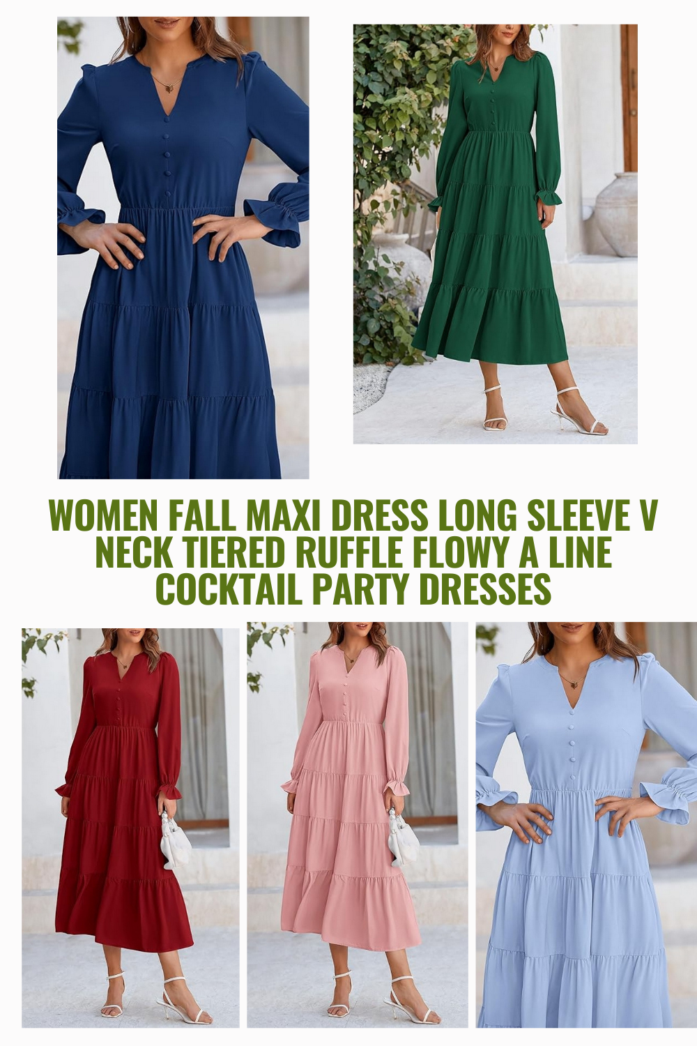 Women Fall Maxi Dress Long Sleeve V Neck Tiered Ruffle Flowy A Line Cocktail Party Dresses 13