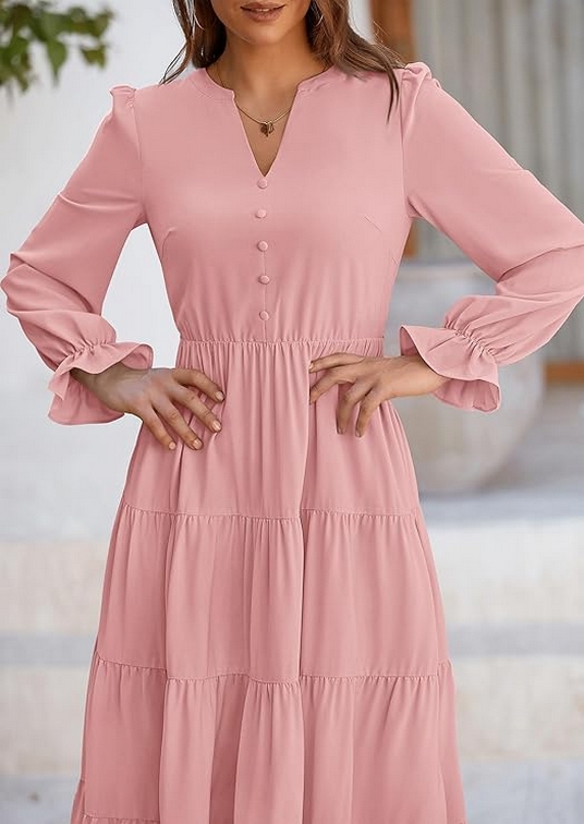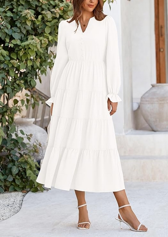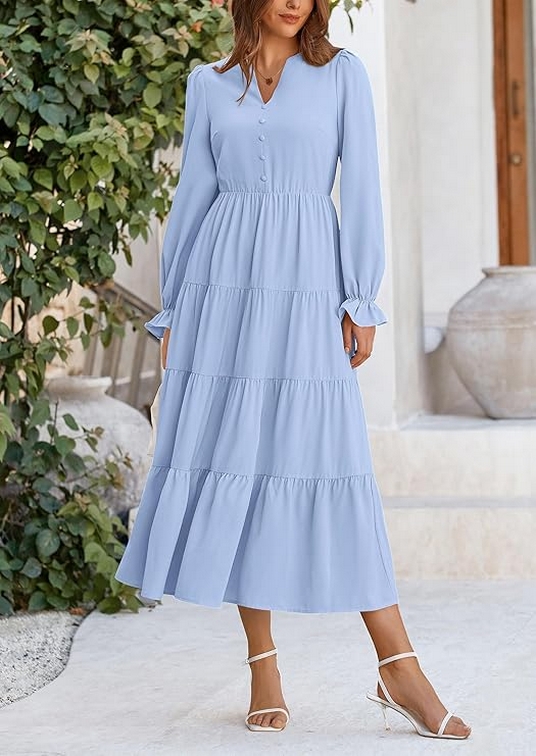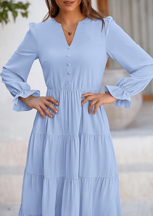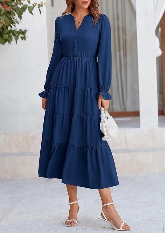As the crisp autumn air rolls in and leaves start turning golden, it’s time to rethink our wardrobes. Enter the women’s fall maxi dress The women’s fall maxi dress with its long sleeves, V-neck, tiered ruffles, and flowy A-line cut is a versatile and stylish choice for the autumn season. Whether you’re heading to a cocktail party, enjoying a casual day out, or dressing up for a special evening, this dress can be adapted to suit any occasion. With its flattering design and elegant details, it’s a wardrobe staple that combines comfort with sophistication. Embrace the charm of fall with a maxi dress that makes you look and feel fabulous!