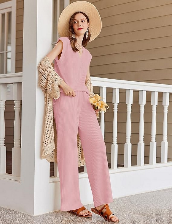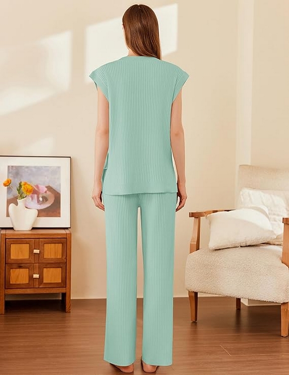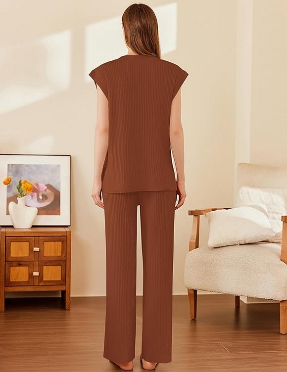 Lounge for Women Outfits Knit Cap Sleeve PJ Tops Long Pajama Pants Casual Sweater Ideas