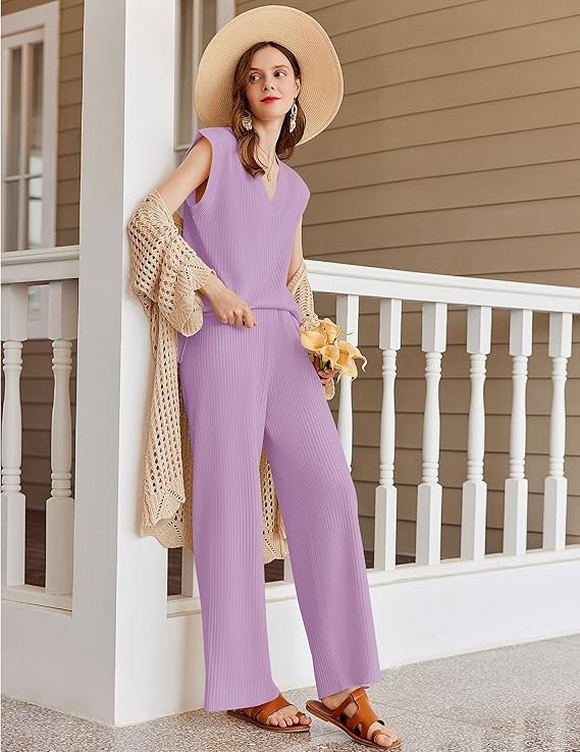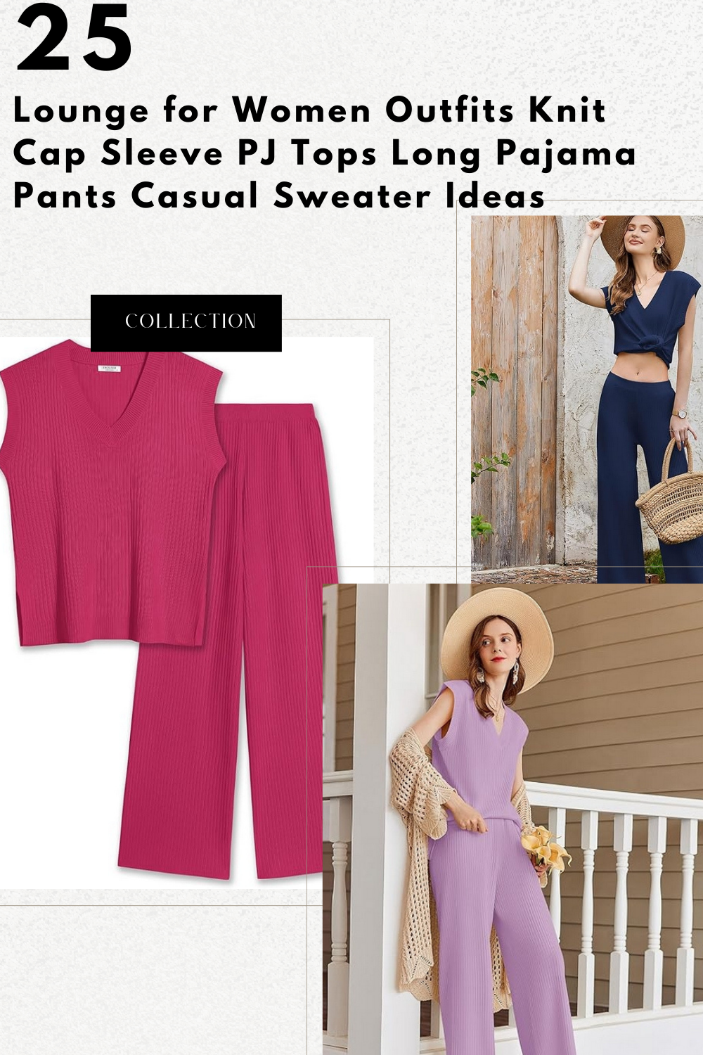 Lounge for Women Outfits Knit Cap Sleeve PJ Tops Long Pajama Pants Casual Sweater Ideas 10
