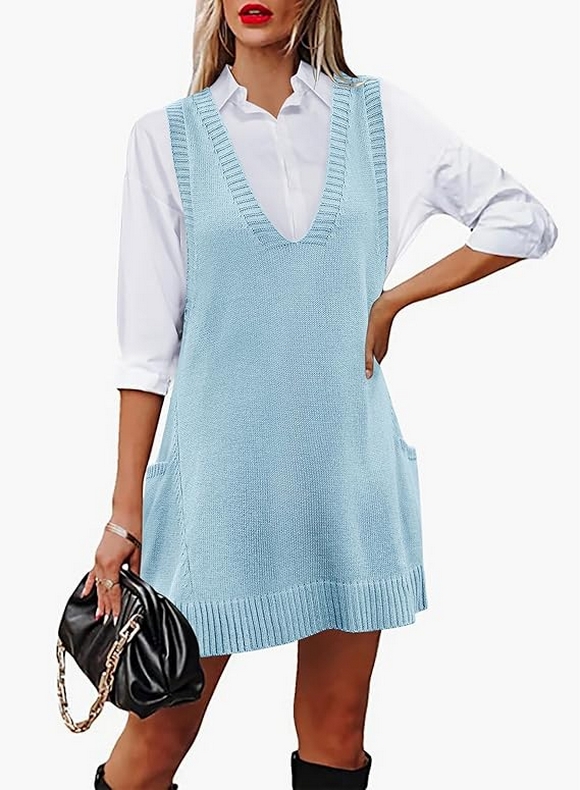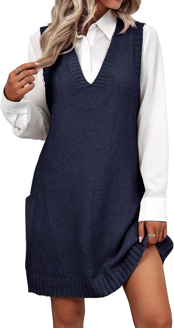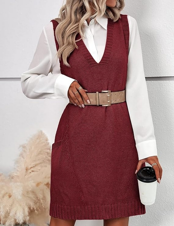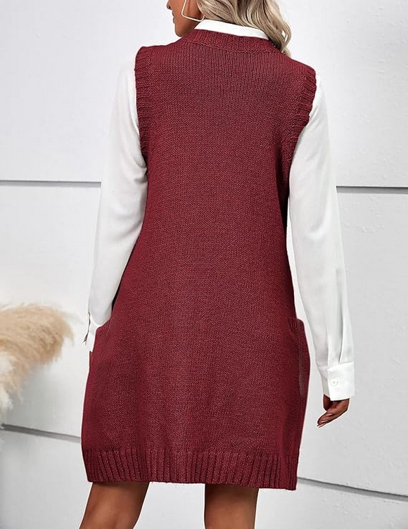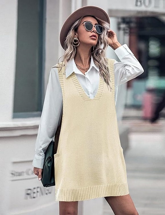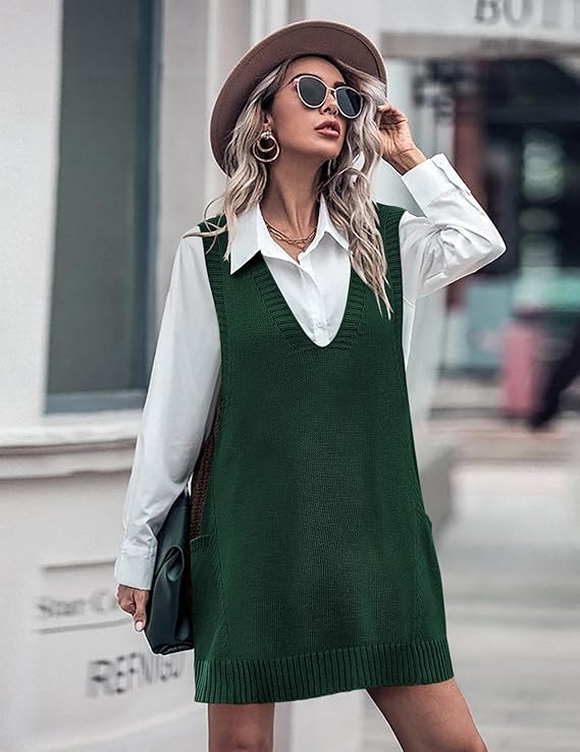 The oversized V-neck sleeveless knit pullover ribbed vest dress with pockets is truly the ultimate fall fashion staple for 2024. Its combination of style, comfort, and practicality makes it a versatile piece that works for various occasions, from casual hangouts to more formal outings. Whether you’re layering it with a turtleneck or wearing it solo with sneakers, this sweater vest dress offers endless styling options that fit your lifestyle.