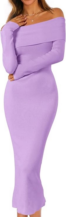 Fall Off Shoulder Bodycon Sweater Dress Formal Long Sleeve Elegant Cocktail Party Midi Maxi Dresses 07