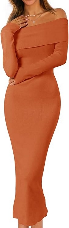 Fall Off Shoulder Bodycon Sweater Dress Formal Long Sleeve Elegant Cocktail Party Midi Maxi Dresses 16