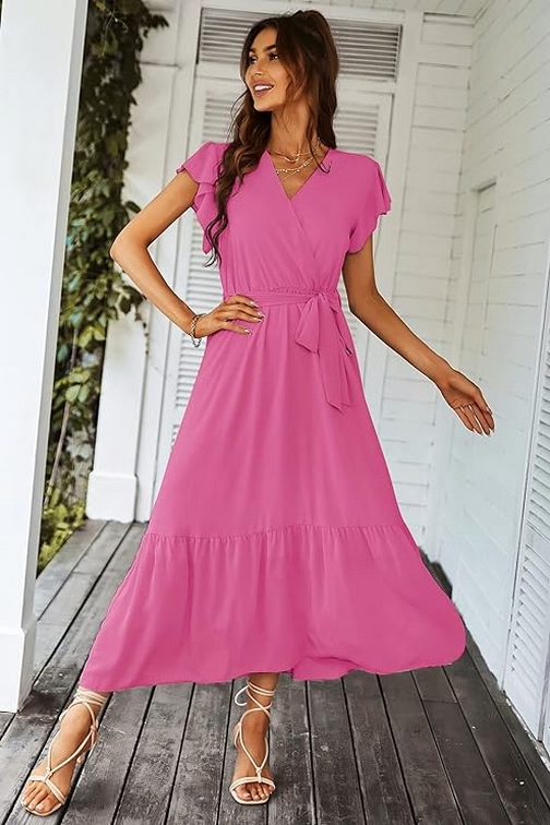 Gorgeous Womens 2024 Floral Boho Dress V Neck Short Sleeve Ideas 04