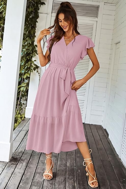 Gorgeous Womens 2024 Floral Boho Dress V Neck Short Sleeve Ideas 08