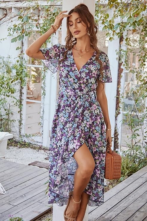 Gorgeous Womens 2024 Floral Boho Dress V Neck Short Sleeve Ideas 21