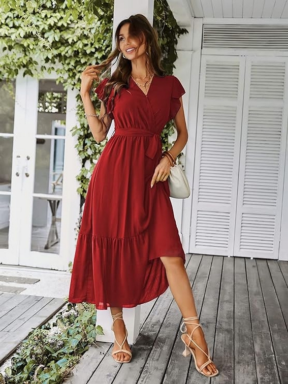 Gorgeous Womens 2024 Floral Boho Dress V Neck Short Sleeve Ideas 34